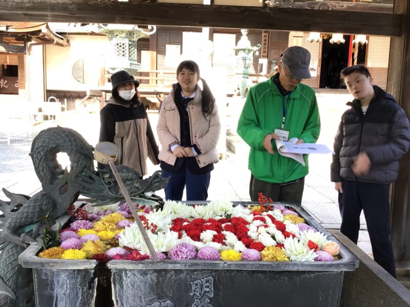 中学部1組2組 生活単元学習「街おこしネットワーク【紫陽花植樹】」 令和7年度 中学部トピックス 2026.01.27 中学部1年生は、街おこしの取組として、地域の方と協力し、柳谷観音楊谷寺で紫陽花植樹を行いました。一人2苗ずつスコップで穴を掘って丁寧に植樹することができました。その後、地域理解を深めるために楊谷寺の境内を散策し、歴史や雰囲気を感じ取ることができました。 穴をなるべく深く掘ります。うまくいけば今年咲きます。 楊谷寺を散策しました。