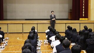 4月30日(木)、今年度初めての全校避難訓練を行いました。今回は京都府北部を震源とする震度7の地震が発生したことを想定して行いました。雨天であったため体育館への避難となりましたが、みんな静かに混乱なく避難することができました。
