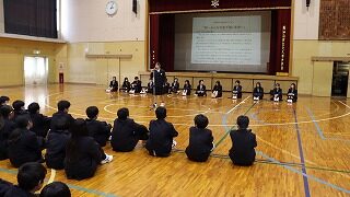 六中日誌 4.10 早く中学校に慣れよう! 新入生歓迎会 本日、午後から早く中学校に慣れてもらおうと新入生に対して各委員会の委員長や部活動の部長が委員会やそれぞれの部活動の説明や紹介を行いました。新入生達は静かに前に立つ先輩達の話をしっかりと聞くことができていました。最後は新入生の代表者がお世話... 2026.04.10 六中日誌