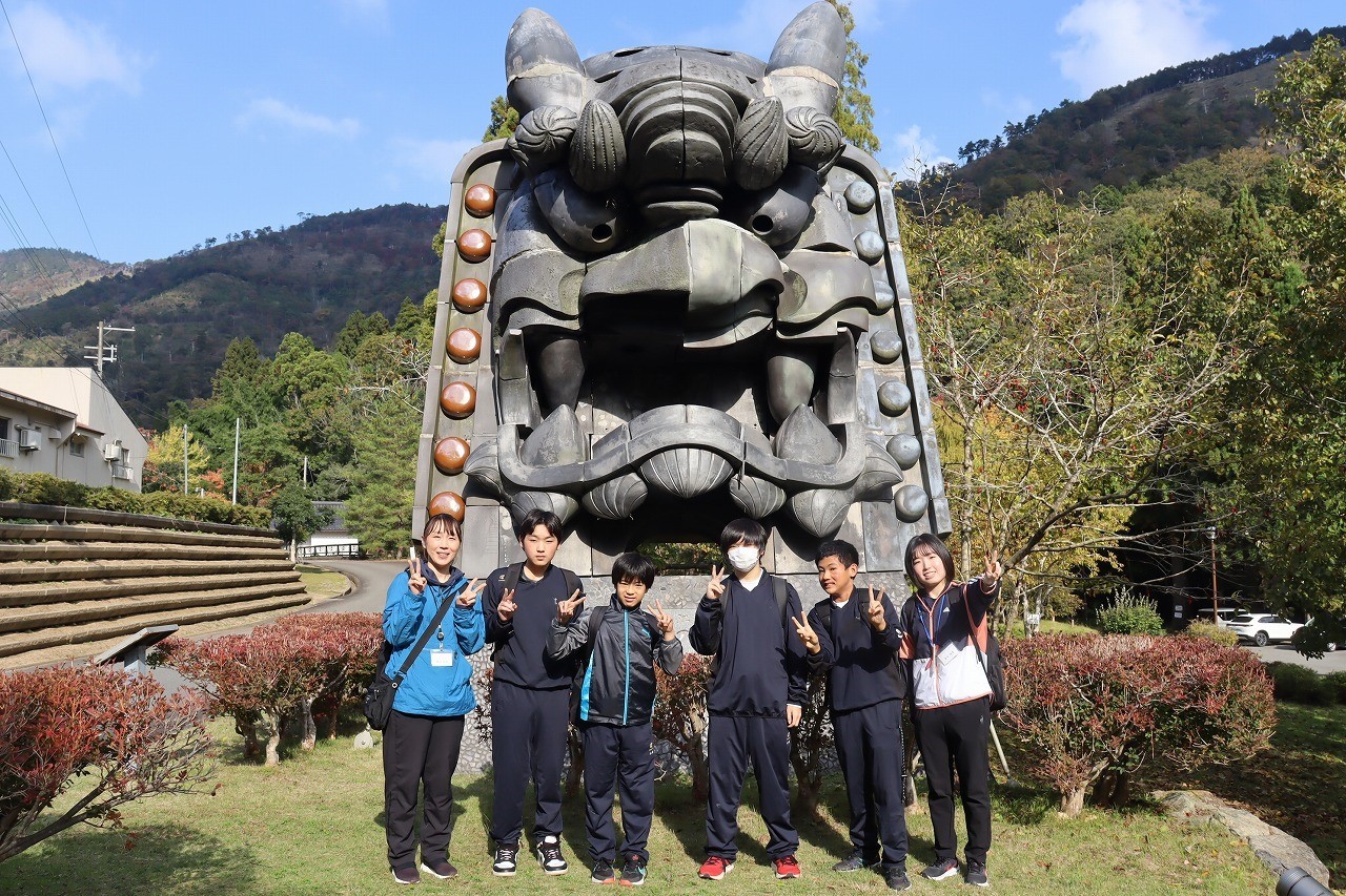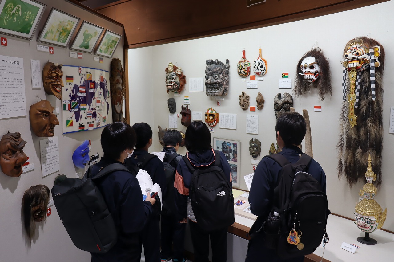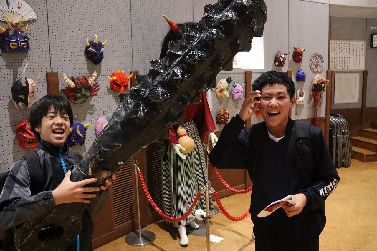 日本の鬼の交流博物館では、クイズラリーや館長さんへのインタビューをとおして、大江町の伝統や歴史を知る良い機会となりました。万博にも行った鬼や日本の鬼、世界の鬼などがたくさん展示されており、生徒たちも食い入るようにみていました。