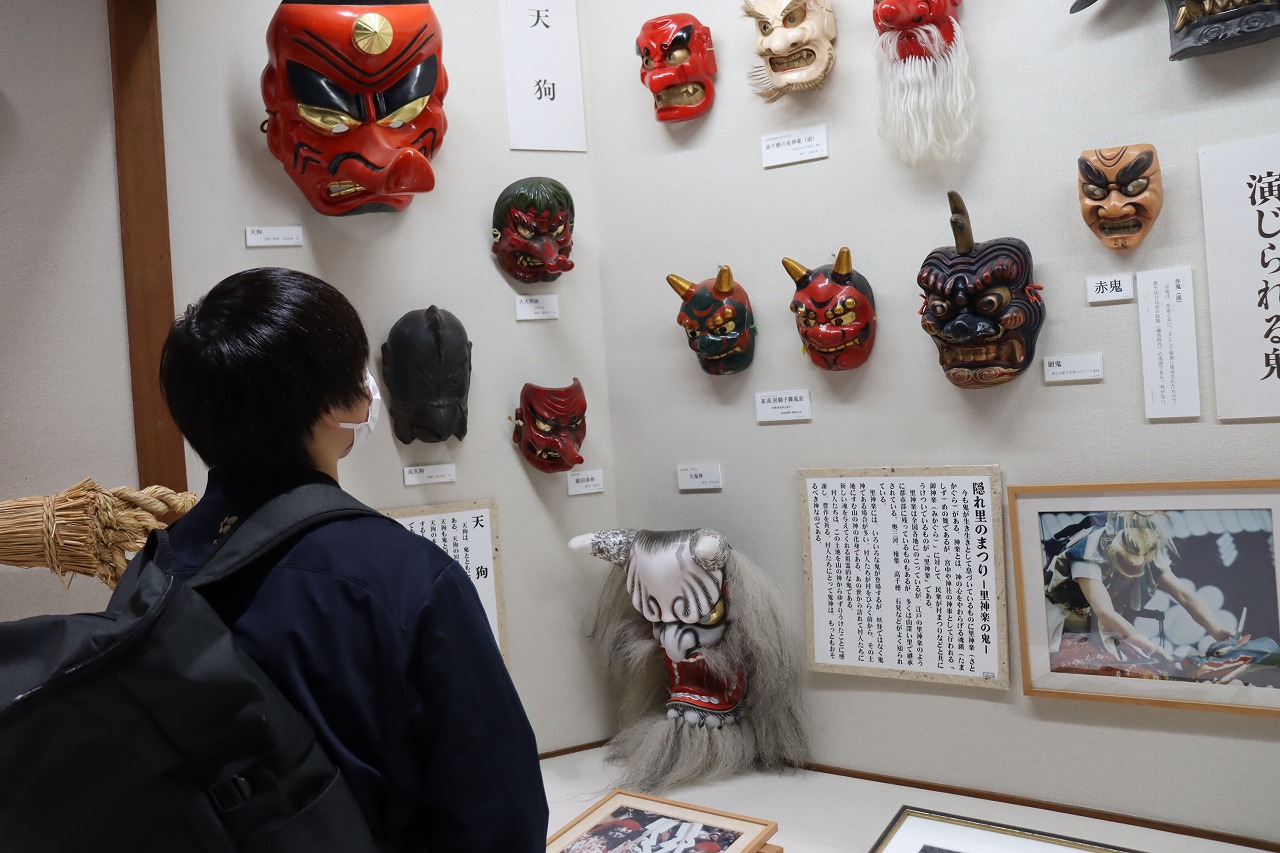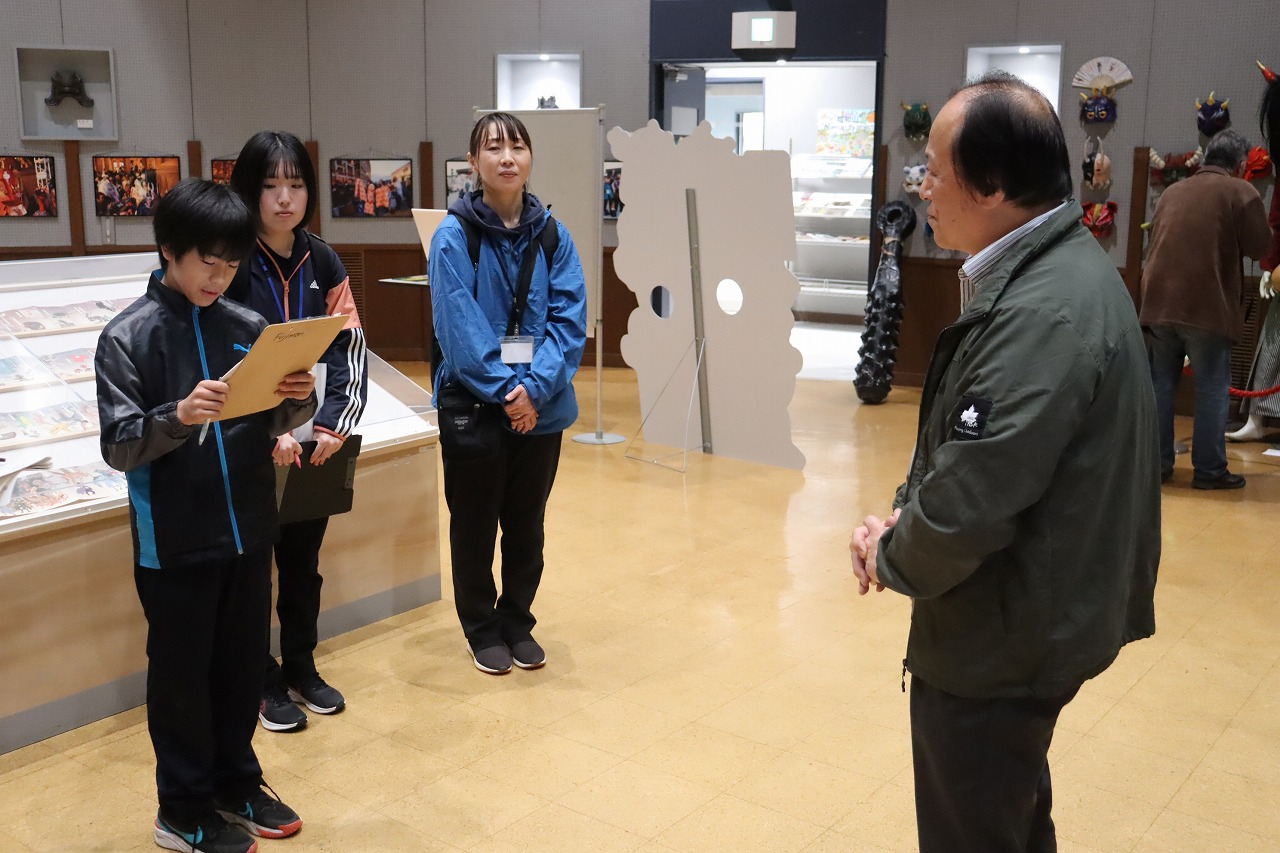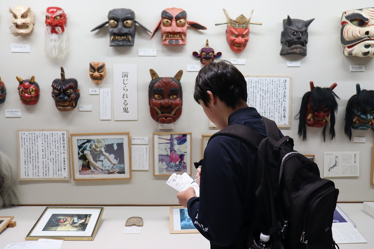 日本の鬼の交流博物館では、クイズラリーや館長さんへのインタビューをとおして、大江町の伝統や歴史を知る良い機会となりました。万博にも行った鬼や日本の鬼、世界の鬼などがたくさん展示されており、生徒たちも食い入るようにみていました。