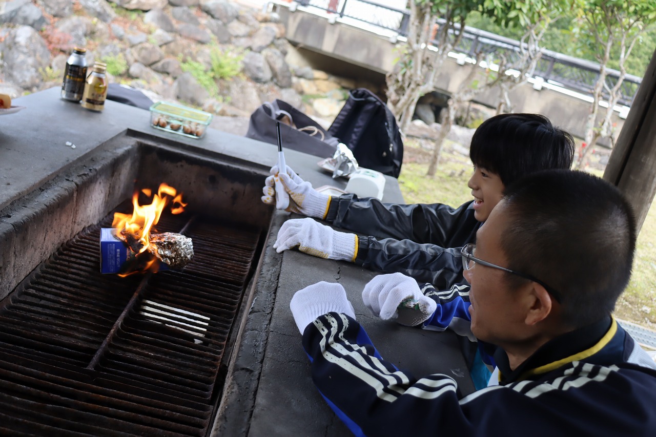 お昼はみんなでBBQ!!大自然を感じながら、カートンドッグや焼きそば、焼きマシュマロを作って食べました。マシュマロを炭に突っ込むというハプニングもありましたが…、楽しくおいしく過ごしました。