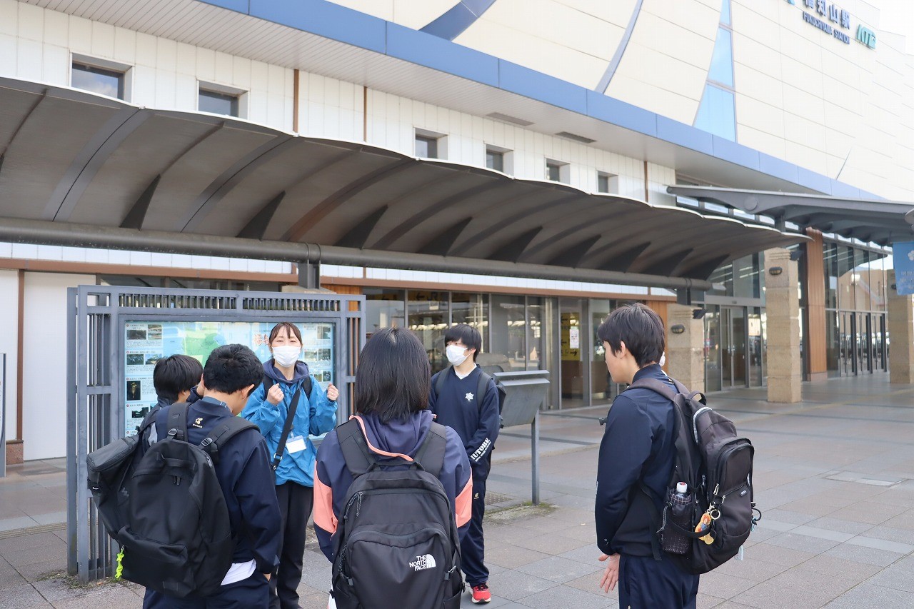 11月7日(金)、本校のまなび学級が校外学習で大江町を訪れました。この日に向け生徒たちは、大江町の歴史や電話のかけ方、公共の場でのルールやマナーについて学習を重ねてきました。当日、実際に自分たちでタクシー会社に電話をしたり、切符を買って公共交通機関を利用したりなど、学習したことをいかして積極的に取り組むことができました。