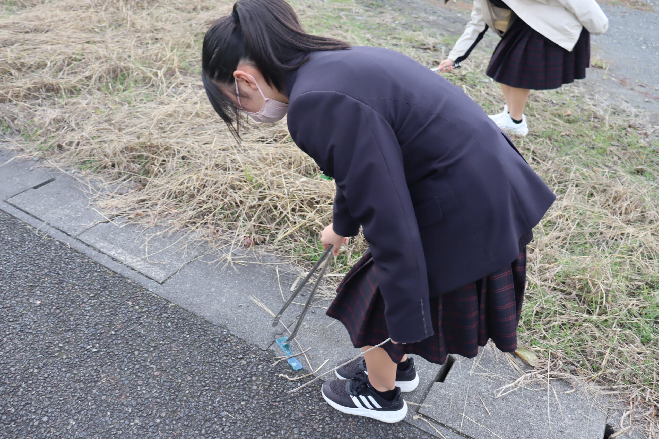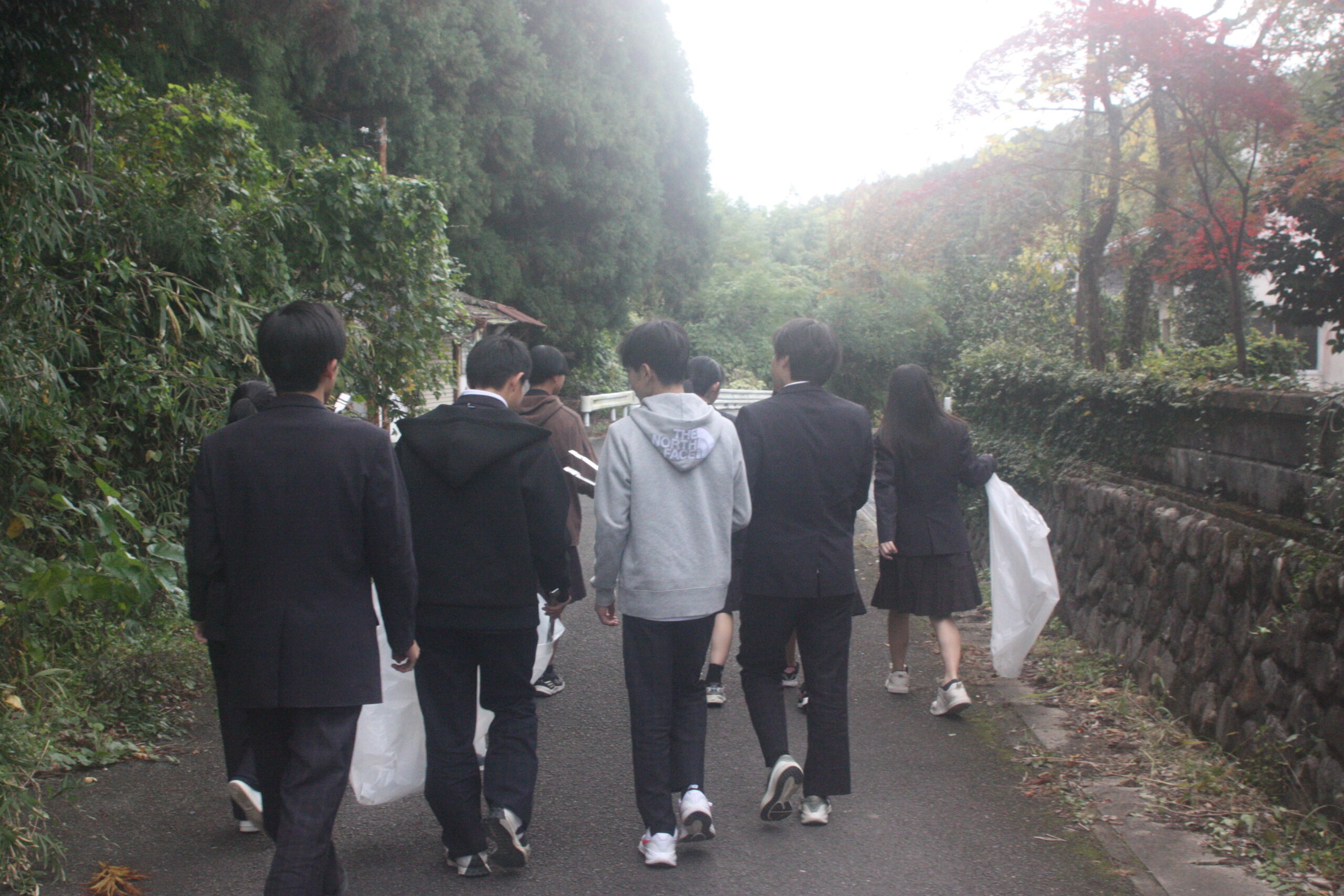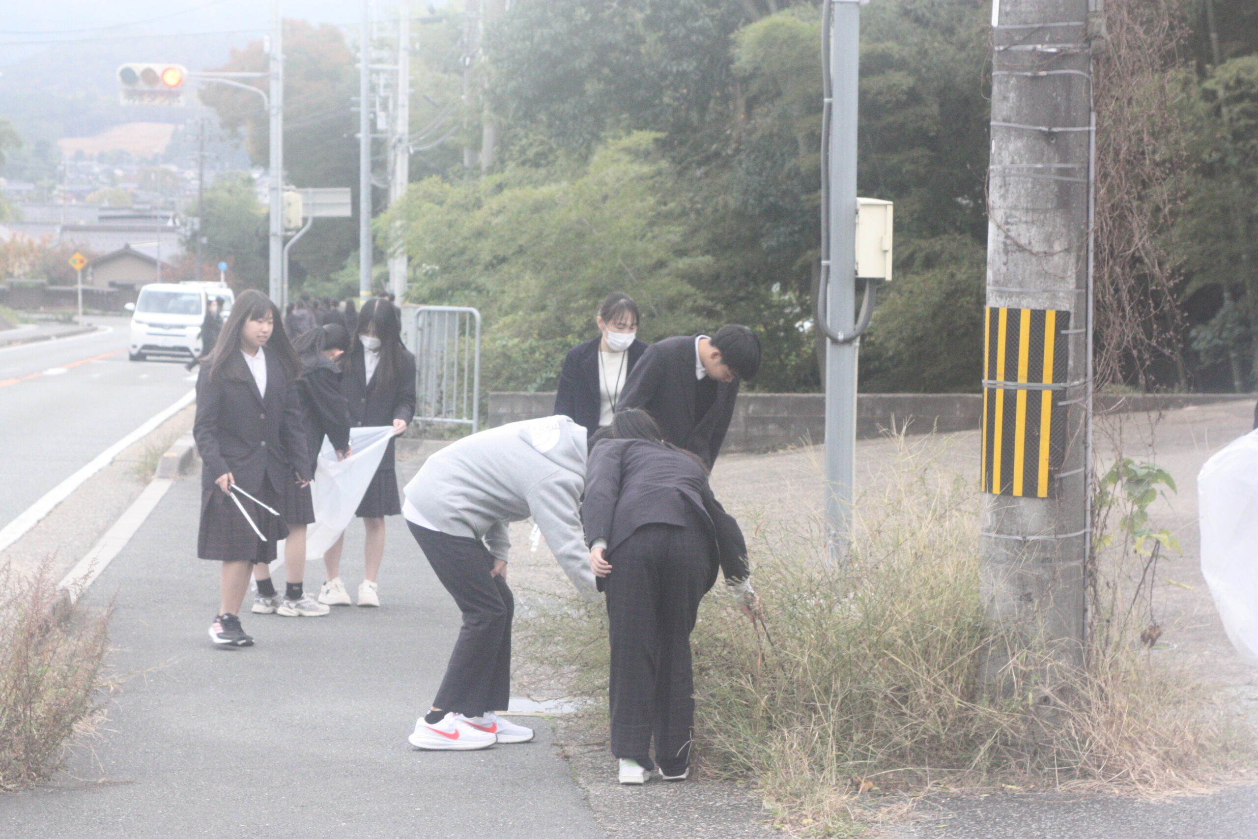放課後の時間を活用し、火ばしとごみ袋を手に3方面にわかれてゴミを拾いました。自分たちのふるさとを大切に思う心を行動にうつし、これからも感謝の気持ちを忘れず、地域のみなさまと一緒によりよい素敵な六人部にしていきたいと思います。