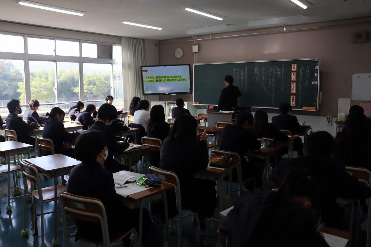 11月14日(金)、人権学習の参観日がありました。全学年「部落差別・同和問題」を学習し、考えを深めました。人権問題や差別について、過去の歴史や現状について、正しく知らなければおかしいことに気づくことができません。正しく学び、おかしいことに気づき、決して許してはならないという強い思いを持って、自分にできる行動をする。そんな人たちがさらに増え、自分を隠すことなく、飾ることなく堂々と「幸せを生きられる」世の中になるよう、これからもみんなで考え続けていきたいです。