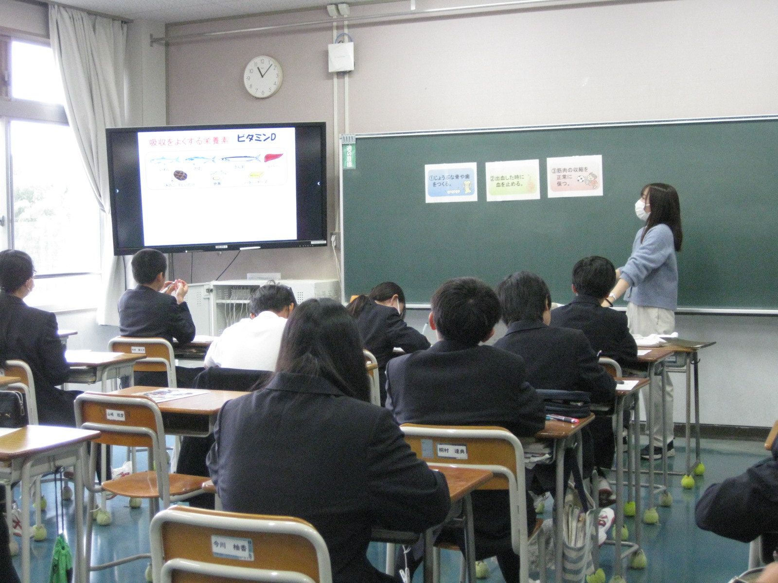 私たちの体は食べたものでできています。骨が完成するまでの中学生の時期に、カルシウムを骨の中にしっかり貯めておくことが、一生じょうぶな骨でいるために重要です。「一食一食を大切に」とのメッセージを生徒たちもしっかりと受け止めていました。