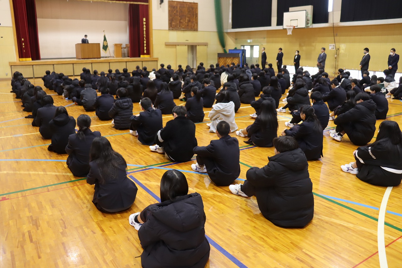 本日始業式を行い、3学期がスタートしました。3年生にとっては希望進路を自分の力で切り拓く、1・2年生にとっては来年度に向けての大切な準備期間となるこの3学期を、それぞれの目標に向かって有意義に過ごしていきましょう!!