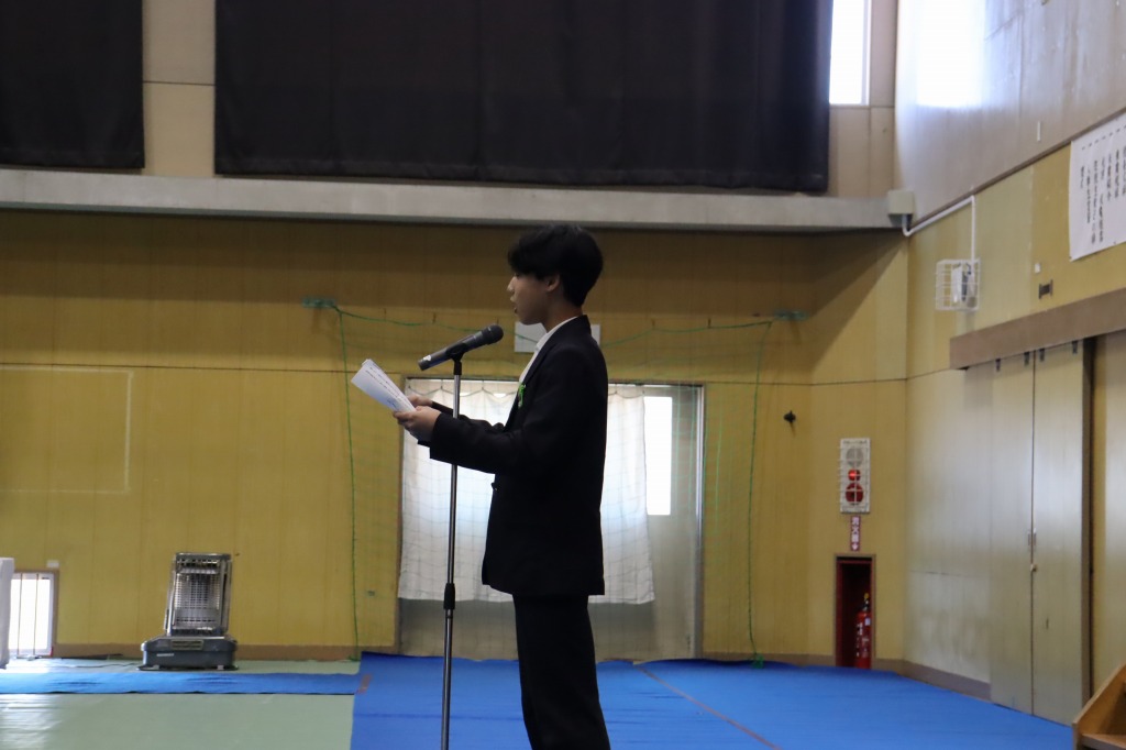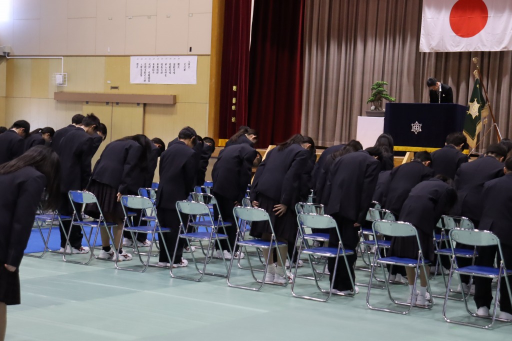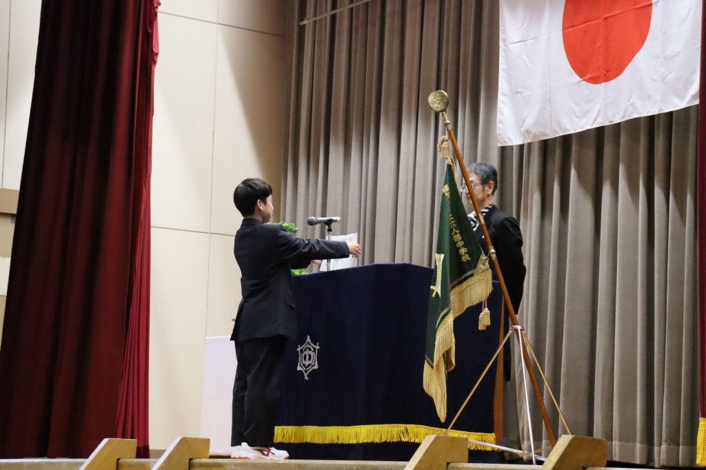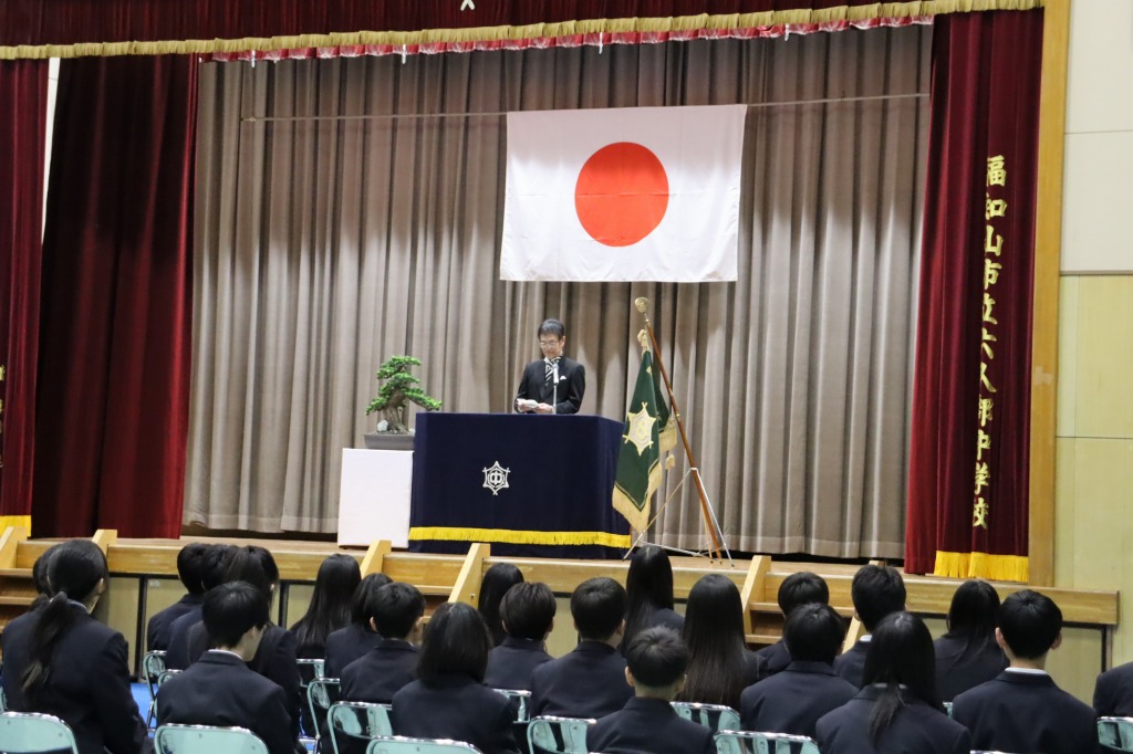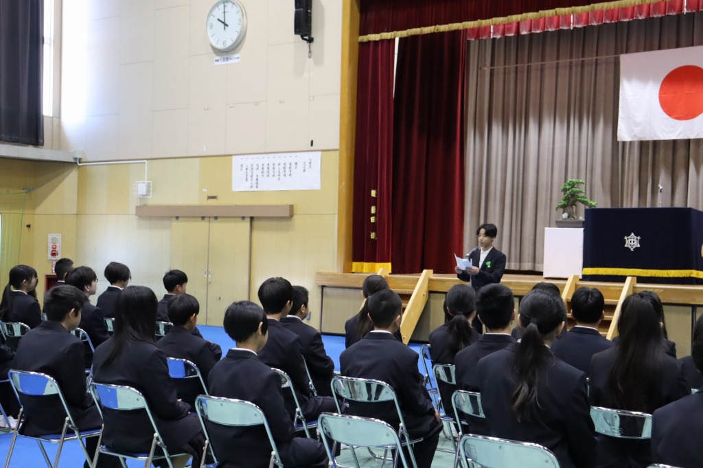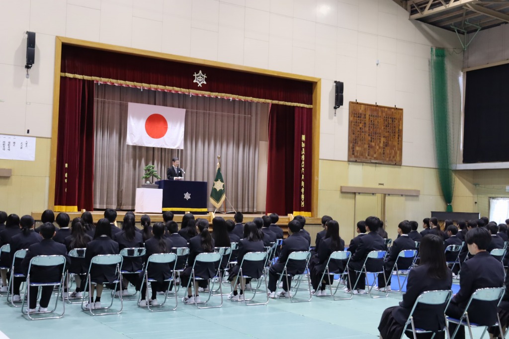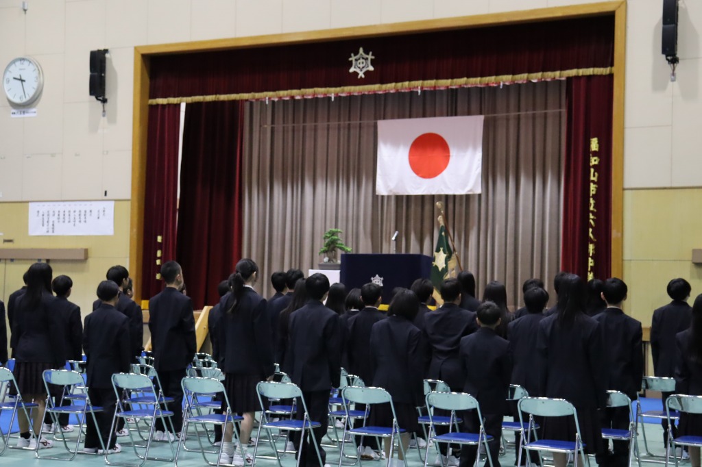 4月8日、令和8年度六人部中学校入学式が行われました。72名の新入生が、元気に六中生となりました。初めての中学校で、緊張もあったと思いますが、新入生の宣誓もすごく元気で気持ちの良い宣誓でした。(宣誓の様子が両丹新聞にも掲載されていました。)いよいよ中学校での生活がスタートしました。気持ちも新たに、1からのスタートのつもりで、中学校で様々なことにチャレンジしてほしく思います。日常生活を充実させ、日常生活で身につけた力を行事等のいろいろな場面で発揮してほしく思います。「笑顔があふれ、生き生きと活動できる六人部中」を生徒の皆さんと先生達で作っていきましょう。