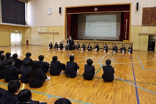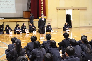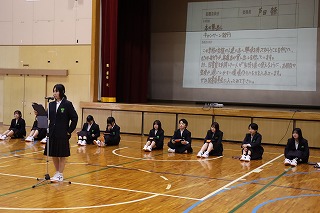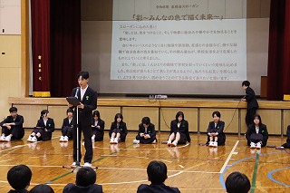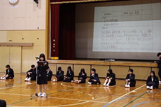 本日、午後から早く中学校に慣れてもらおうと新入生に対して各委員会の委員長や部活動の部長が委員会やそれぞれの部活動の説明や紹介を行いました。新入生達は静かに前に立つ先輩達の話をしっかりと聞くことができていました。最後は新入生の代表者がお世話になった先輩達にお礼の言葉を述べて、新入生全員がお礼を言っていました。新入生歓迎会の後は部活動の見学を行いました。新入生の皆さんは入学式、昨日、本日と緊張の連続だったと思います。明日、明後日はしっかりとリフレッシュして月曜日からまた、元気に登校してきてほしく思います。