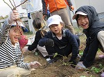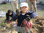 地域の方に教えていただきながら春に苗を植え、水やりをしてきたさつま芋を収穫しました。芋が割れないように一つ一つやさしく丁寧に掘りました。1~3年生の子ども達は、「大きいのがあった。」「もぐらみたい。」「いっぱいある。」と言いながら収穫の喜びを感じていました。