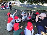 小春日和の中、途中ヶ丘公園に行き、いさなご小学校の1年生と交流学習をしました。秋見つけでは一緒にどんぐり等を拾い、遊びでは鬼ごっこ等の遊びを一緒に楽しむことができました。一緒に学習することに徐々に慣れてきたようです。