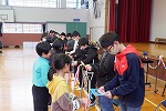 5年生が企画し、1から4年生が役割を分担しながら、6年生に感謝の気持ちを伝えました。まず、1、2年生と手をつないで6年生が入場し、その後、5年生が進行した「〇×クイズ」や、4年生が進行をした「線鬼」や「ジャンケンピラミッド」をして全校児童で遊びました。それから、事前に在校生から集めたメッセージやメダルをを3年生が渡しました。