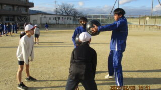 長岡第二中学校の生徒さんが、部活動の体験のために本校にきてくれました。この日は陸上運動の体験に5、6年生がたくさん参加しました。ウォーミングアップの方法や腿上げなど、卒業生が手本を見せながら丁寧に教えてくれました。背筋を鍛えるために重いク...