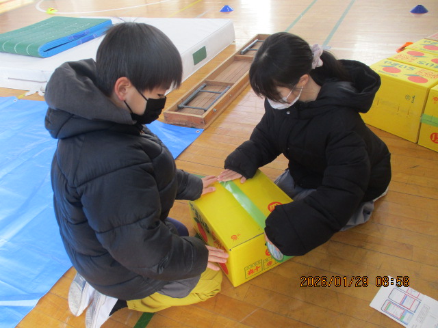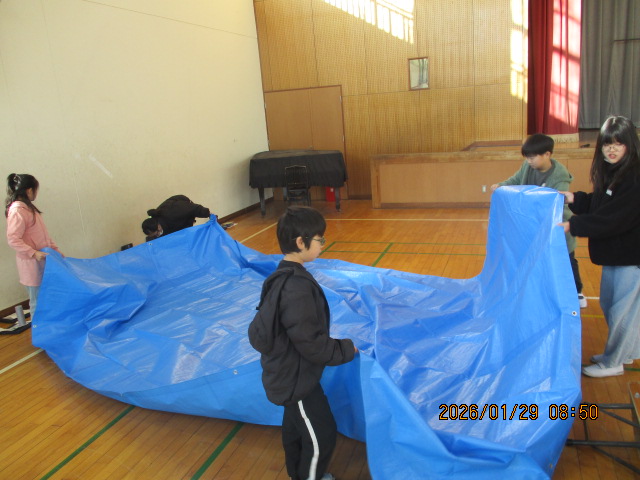 5年生の防災学習がありました。校区の防災訓練で行われた避難所開設を子ども達だけでやってみようと企画しました。