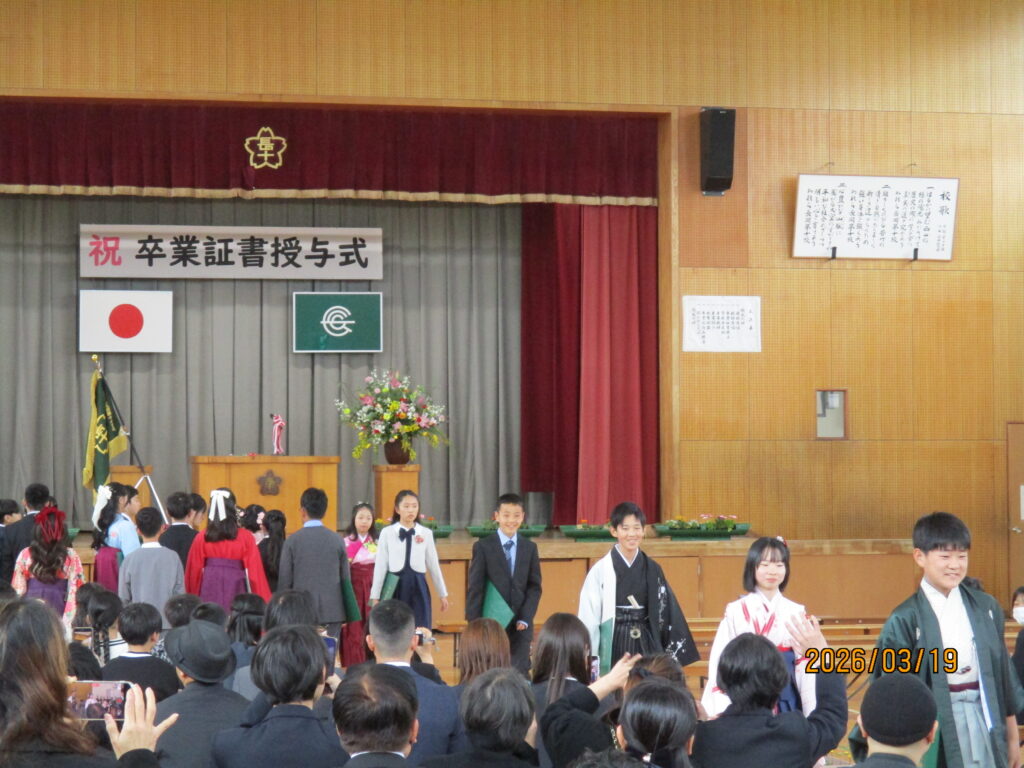3月19日、卒業式がありました。今日で小学校生活も終わりです。卒業証書をしっかり手に取り、堂々とふるまう卒業生の姿からは、すでに中学に向けて気持ちが見て取れ、とても頼もしく感じました。晴れやかな笑顔で歩み始めた卒業生。自信をもって、未来に向かって羽ばたいてほしいと思います。卒業、おめでとう。