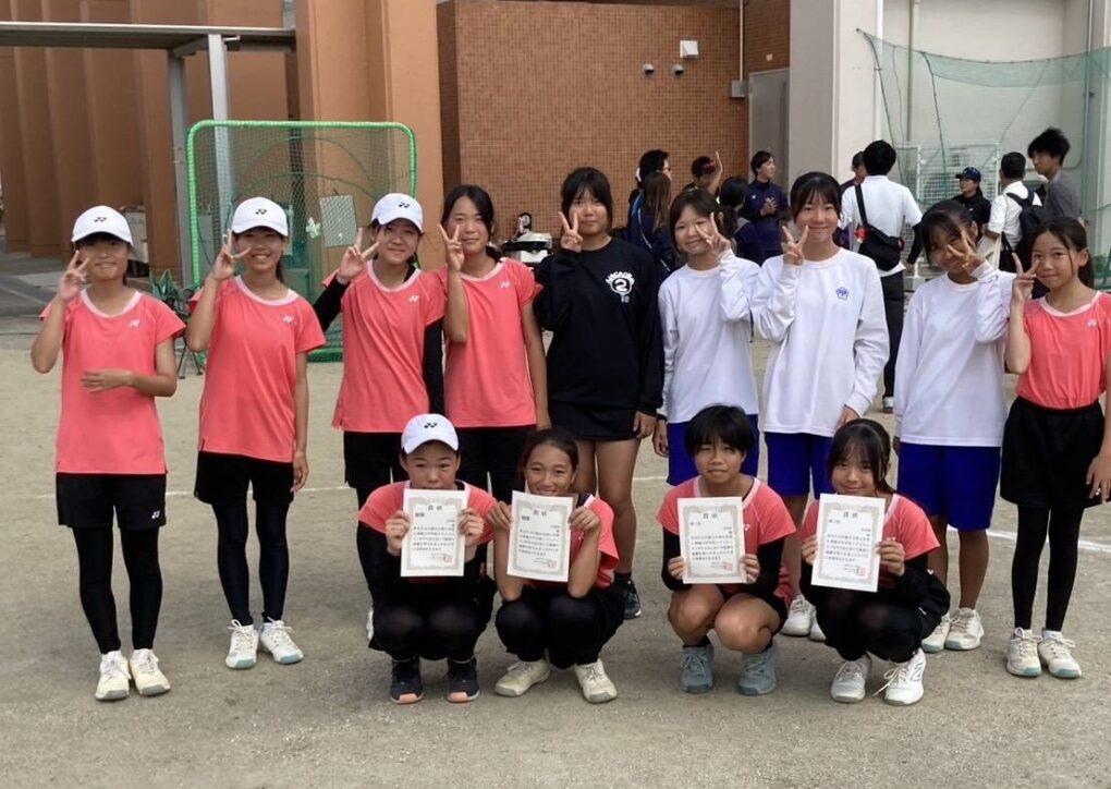 10月5日、13日に西ノ岡中学校で開催されたソフトテニス乙訓一年生大会では女子で優勝、3位、ベスト8(それぞれ1ペアずつ)の好成績を収めました。この3ペアは山城一年生大会に出場する予定です。
