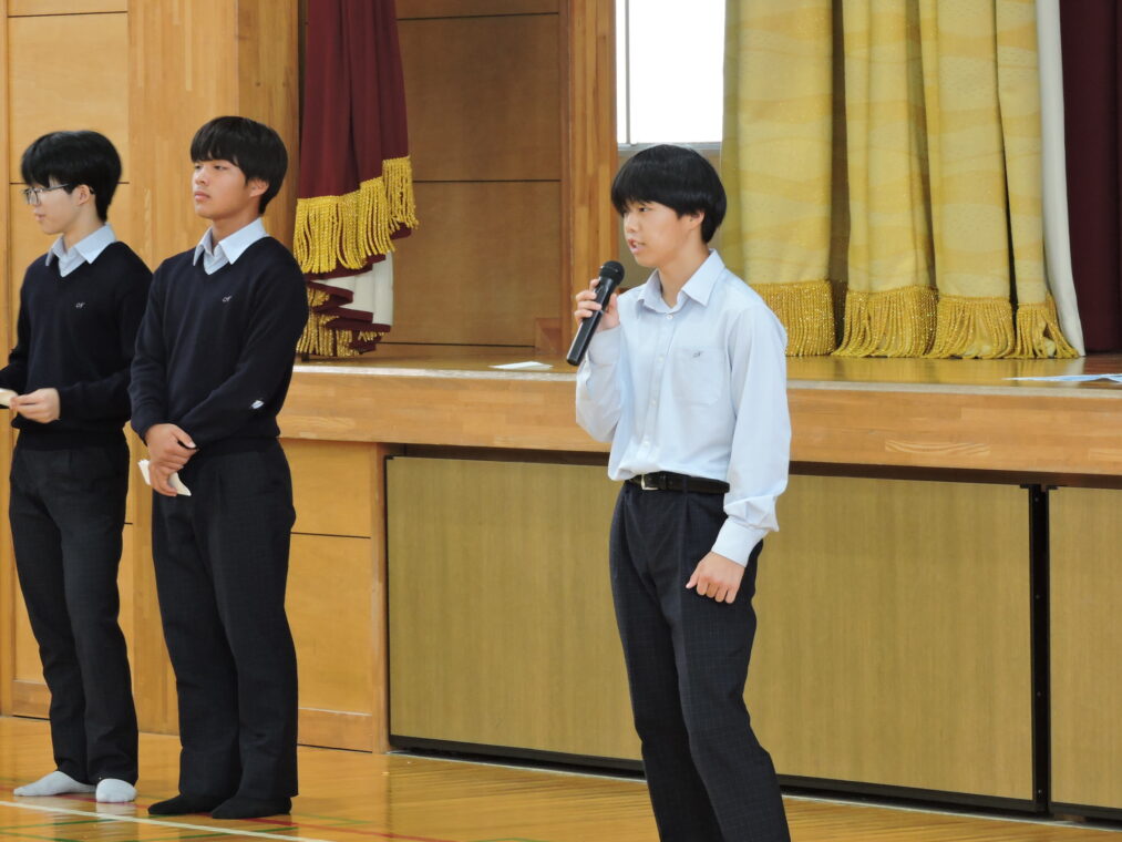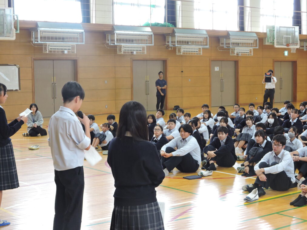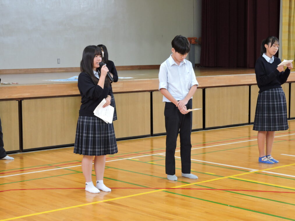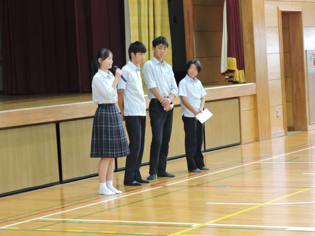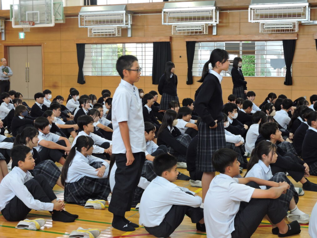 本日の6時間目に、来週の30日(木)(予備日31日(金))に行う体育大会の結団式が実施されました。3年生にとっては中学校生活最後となる体育大会です。また、同時に最後の大きな行事となります。これまでに培ってきたことを存分に発揮し、思い出に残る体育大会にしてほしいと思います。明日から取組がスタートしますが、けがには十分に気を付けて、運動が得意な人もそうでない人も全員が全力で取り組み、楽しめる行事にしてください。