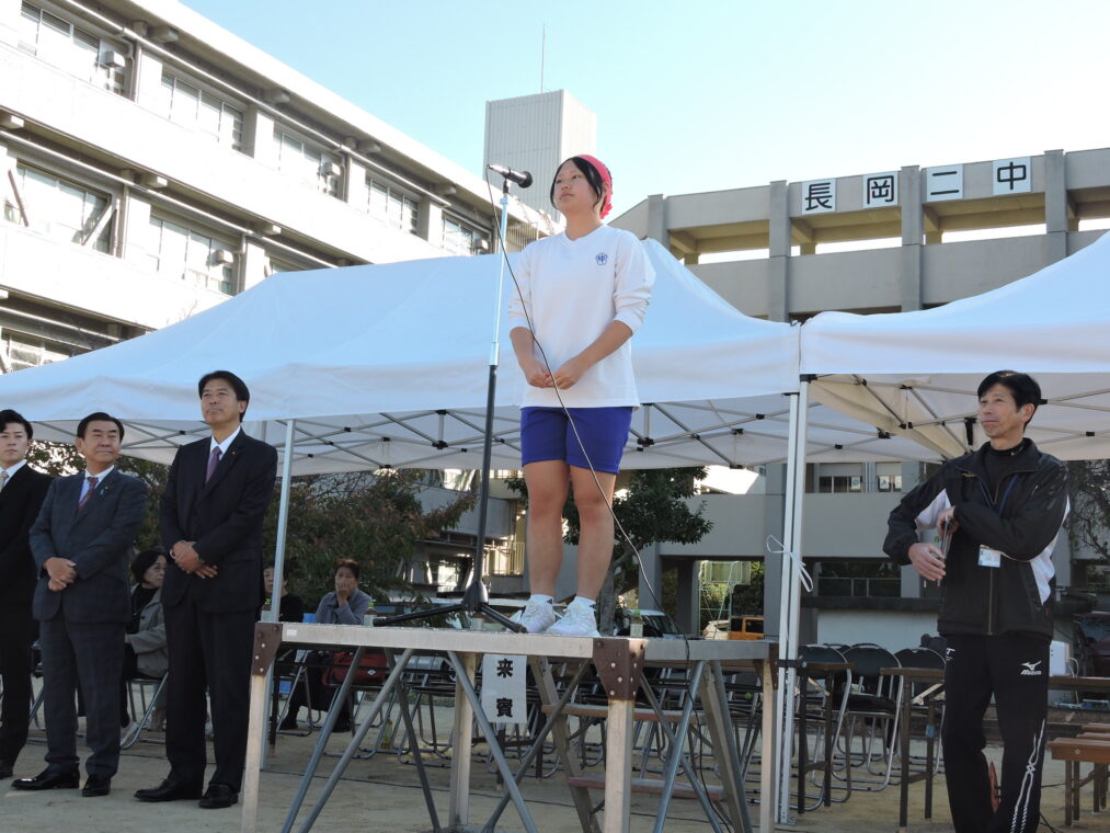 本日、令和7年度第53回長岡第二中学校体育大会が爽やかな秋晴れの下、開催されました。朝は少し肌寒く感じられましたが、徐々に暖かくなり、大変過ごしやすい一日となりました。体育大会の取組期間中は3年生が中心となり、縦割りの競技の練習に取り組みました。長二中の生徒の皆さんの良いところは一つ一つの競技に全員が全力で取り組むところです。これはもはや伝統です。今年もそれぞれの競技に見応えがあり、見ている人たちをとても楽しませていたと思います。また、自分が出場していない競技の時は3学年が一つとなり、大きな声で応援していた姿が印象的です。多くの保護者の方や地域の方々にもご来場いただき、大きな声援をいただいた今年度の体育大会も大きな成功と言えるのではないでしょうか。3年生にとっては中学校生活最後の行事です。3年生の皆さんにとって、楽しく充実した体育大会となっていれば幸いです。1、2年生は3年生の姿を見て、次年度の体育大会をさらにパワーアップさせてほしいと思います。