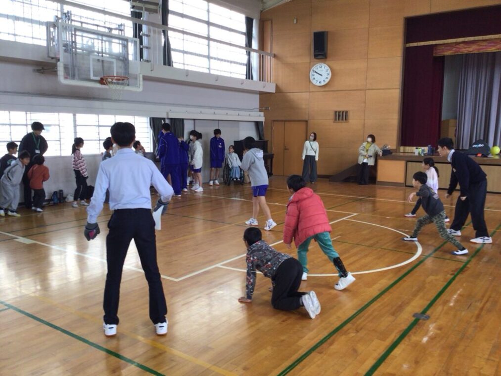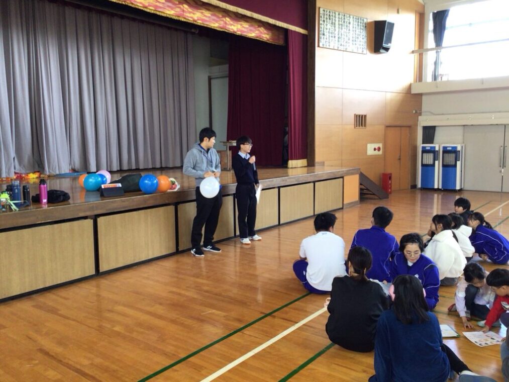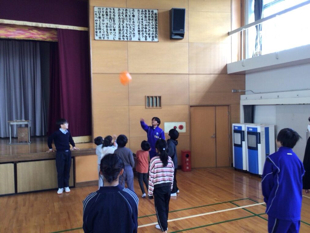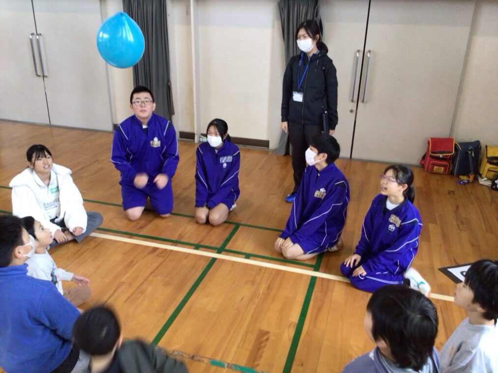 11月11日に小中交流会が長岡第三小学校で行われました。この交流会は毎年行っています。長二中1組の生徒と長三小、長七小、長十小の特別支援学級の児童、向日が丘支援学校の生徒1名が参加し、「だるまさんがころんだ」と「風船バレー」のレクリエーションに取り組みました。校種を超えた交流は貴重な体験であり、どの学校の児童生徒も、良い笑顔で取り組むことができていました。