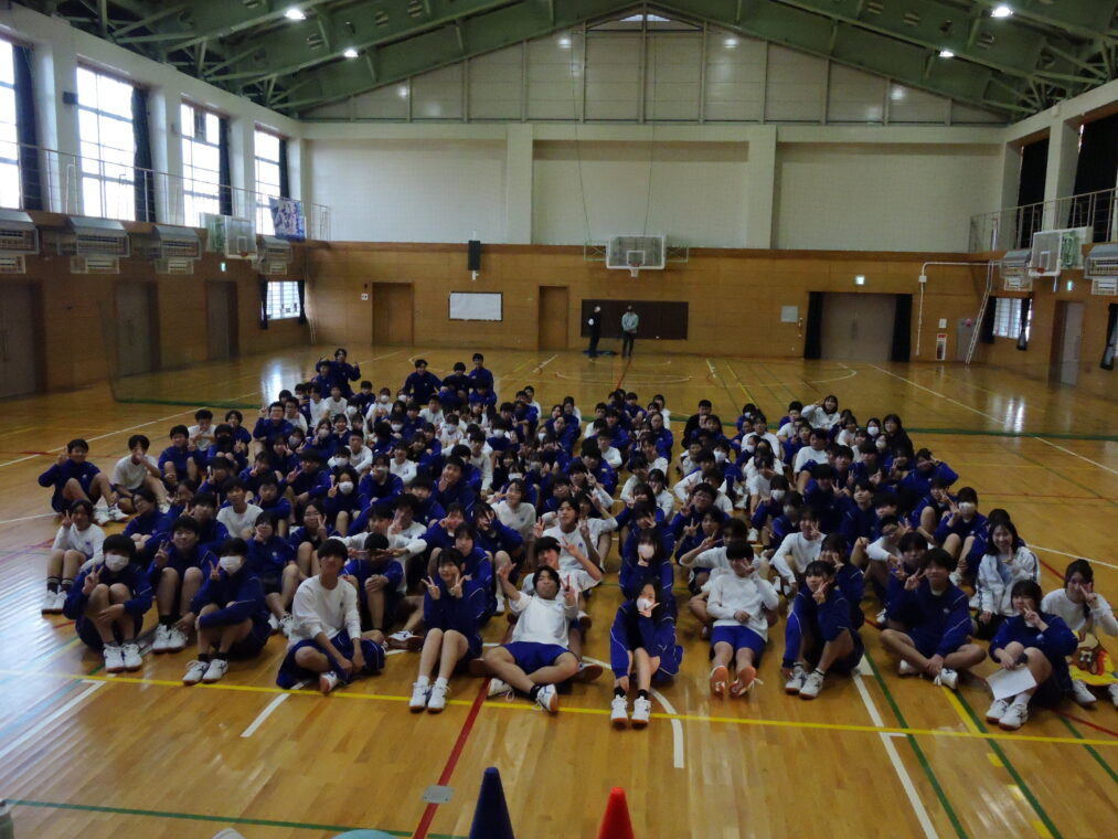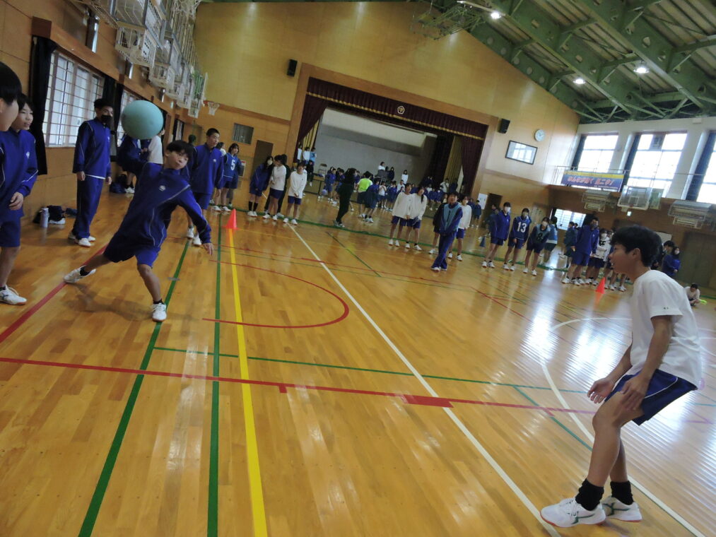 本日の4時間目から6時間目に学年交流ドッジボール大会を開催しました。生徒会本部が体育大会以外で縦割りの学級交流の場を設けようと企画してくれました。1年生から3年生の学級班でチームを組み、勝ち負けにこだわらず、全員で楽しみ、学年間の交流を深める目的がありました。はじめこそ、学年間で声を掛け合うことは難しかったかもしれませんが、徐々に学年の枠を超えて声を掛け合い、応援し合う姿が見られました。生徒会本部の皆さん、このような機会を企画してくれてありがとうございました。