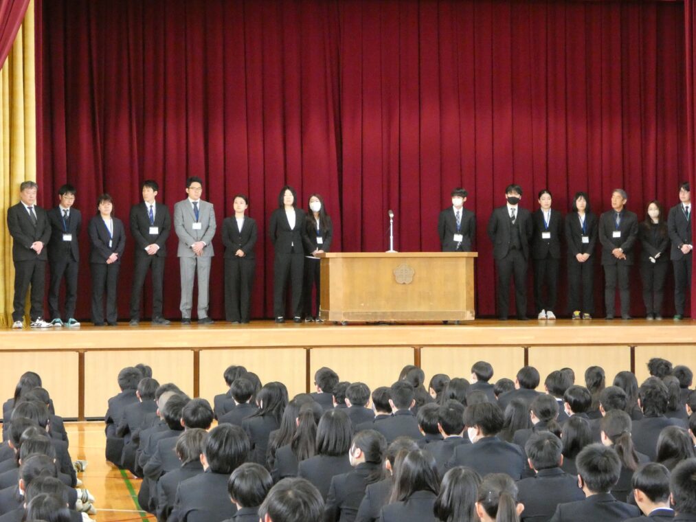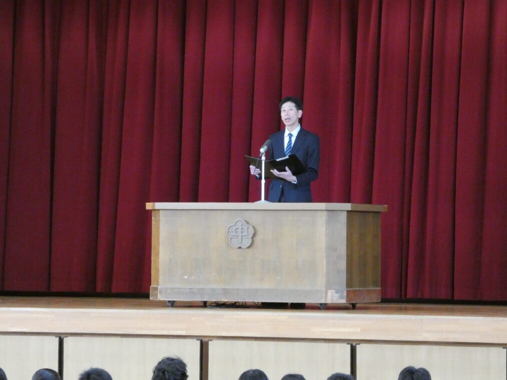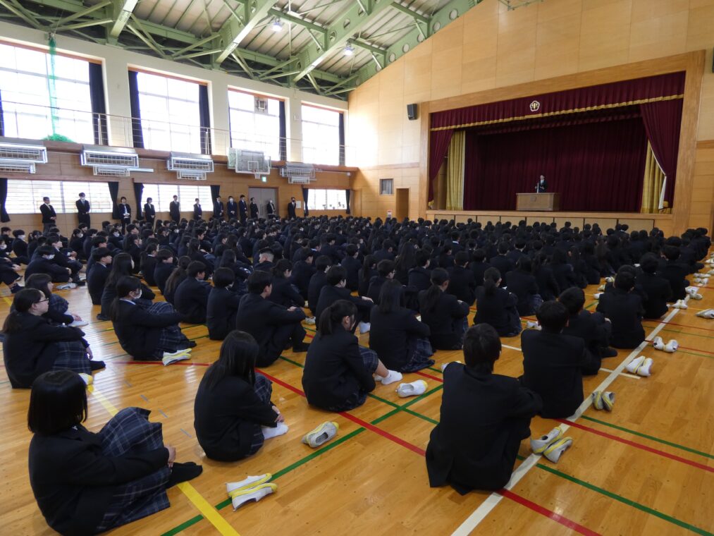 4月8日(水)始業式を行いました。体育館前に張り出された新クラスを確認後、新しいクラスに入り、新しい担任との顔合わせ。少し緊張しながらも、担任の先生の話をしっかり聞いていました。その後、体育館で着任式・始業式を行いました。令和8年度の学校生活のスタートです。1年間で大きく飛躍できるよう頑張っていきましょう。