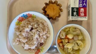 給食のおはなし 10月3日(金)の給食 いとこ汁 今日の給食は、豚キムチご飯、牛乳、きびなごのチーズ揚げ、いとこ汁でした。 いとこ汁は、長岡京市の浄土谷で昔から食べられている郷土料理の一つで、お盆の仏様へのお供えとして作られています。小豆、かぼちゃ、長岡京市の特産品のなすを順々... 2025.10.03 給食のおはなし