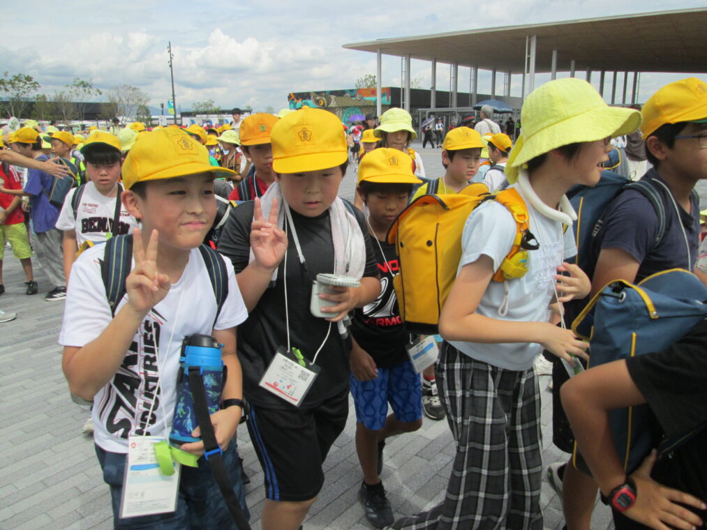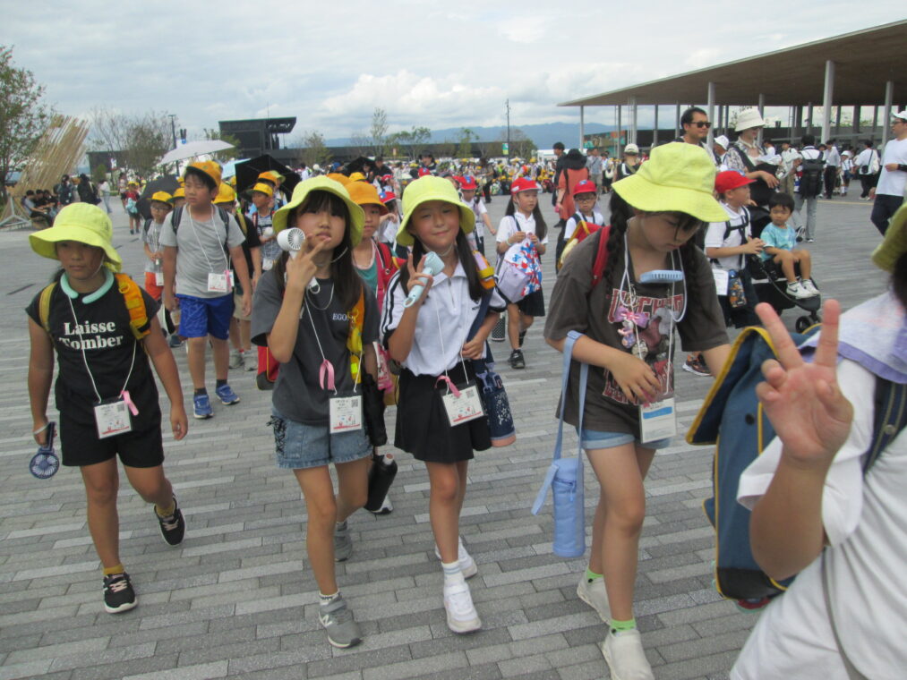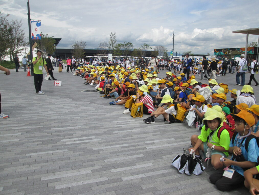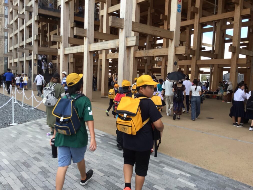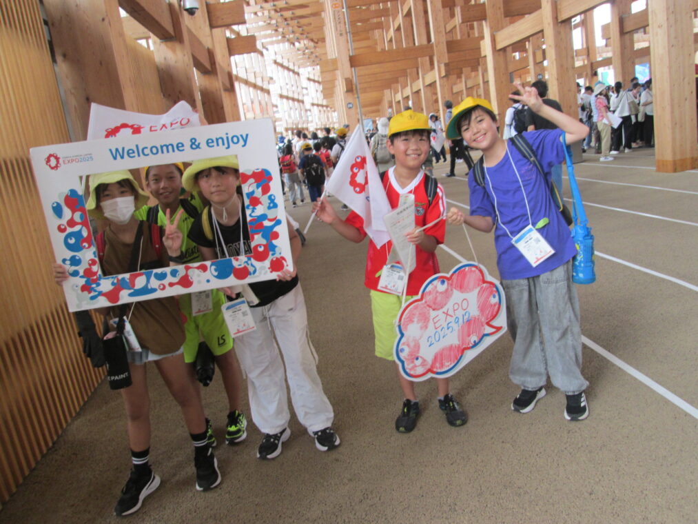 9月12日(金)に4・5・6年生が大阪・関西万博に行ってきました!総勢220名を超える人数での校外学習ははじめてでしたので、しっかり事前準備をし、お家の方にもお弁当や熱中症対策のご協力をいただき、臨みました。気持ちのよい晴天の下、スケジュールどおりに会場に到着し、長三小としては「大阪ヘルスケアパビリオン」の入場予約をしていましたので、どの学年も一度は入ることができました。しかし、この日は会場が大変混雑していましたので、そのあとのグループ活動ではなかなか思い通りにパビリオンを回ることができなかったグループも多かったように思います。(ちなみに、後日の報道によると、この日は来場者数が平日ではじめて20万人を超えた日だったそうです!)しかし、はじめての大屋根リングを見て興奮している人や、様々な形のパビリオンの建物を見て、万博ならではの空気感を楽しめた人も多かったのではないでしょうか。みんなで行く、一生に一度の万博。こんな貴重な機会はなかなかありませんから、大人になってもいい思い出として残ってくれるとうれしいです。