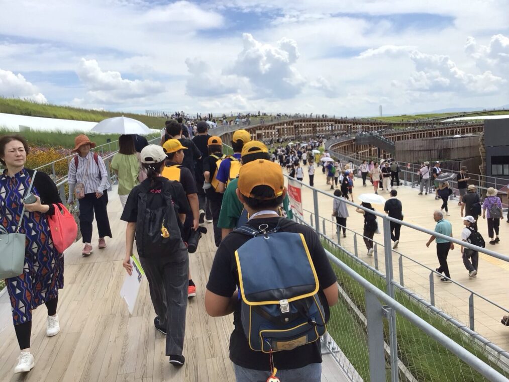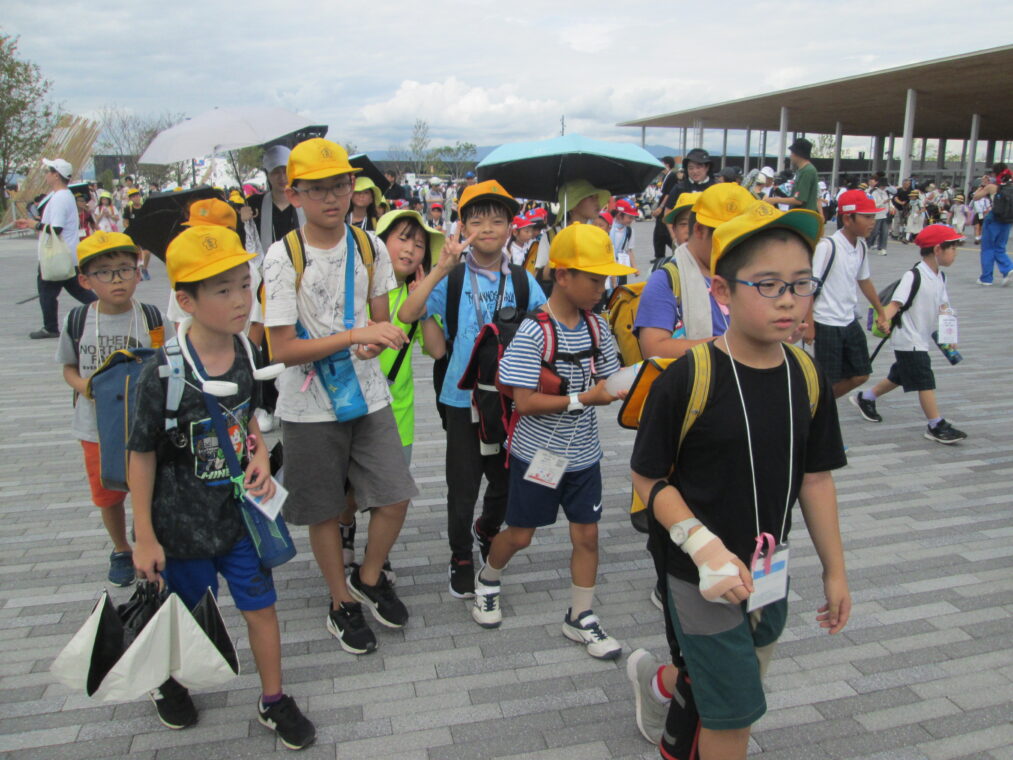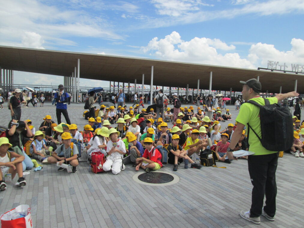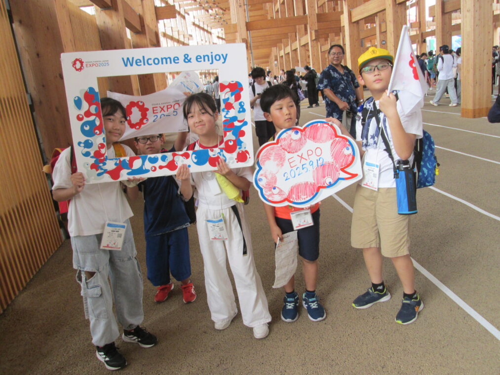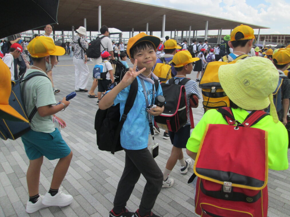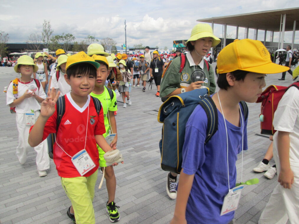 9月12日(金)に4・5・6年生が大阪・関西万博に行ってきました!総勢220名を超える人数での校外学習ははじめてでしたので、しっかり事前準備をし、お家の方にもお弁当や熱中症対策のご協力をいただき、臨みました。気持ちのよい晴天の下、スケジュールどおりに会場に到着し、長三小としては「大阪ヘルスケアパビリオン」の入場予約をしていましたので、どの学年も一度は入ることができました。しかし、この日は会場が大変混雑していましたので、そのあとのグループ活動ではなかなか思い通りにパビリオンを回ることができなかったグループも多かったように思います。(ちなみに、後日の報道によると、この日は来場者数が平日ではじめて20万人を超えた日だったそうです!)しかし、はじめての大屋根リングを見て興奮している人や、様々な形のパビリオンの建物を見て、万博ならではの空気感を楽しめた人も多かったのではないでしょうか。みんなで行く、一生に一度の万博。こんな貴重な機会はなかなかありませんから、大人になってもいい思い出として残ってくれるとうれしいです。