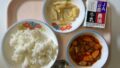 チキンガンボの「ガンボ」とは、「オクラ」のことです。鶏肉やソーセージなどが入ったスパイスの効いた汁ものにオクラが入るのが特徴です。オクラに粘りがあるのでシチューのようなとろっとした仕上がりになりました。アメリカ南部の伝統的な料理で、ご飯にかけて食べることが多いそうです。給食でも、ご飯にかけられるようにカレー皿で提供しました。カレーよりも汁っぽいので、ご飯がべちゃべちゃになるのがちょっと…という人は別々に食べていました。「お皿が汚れるから口の中で完成させるねん!」と言って食べている児童も何人かいました。