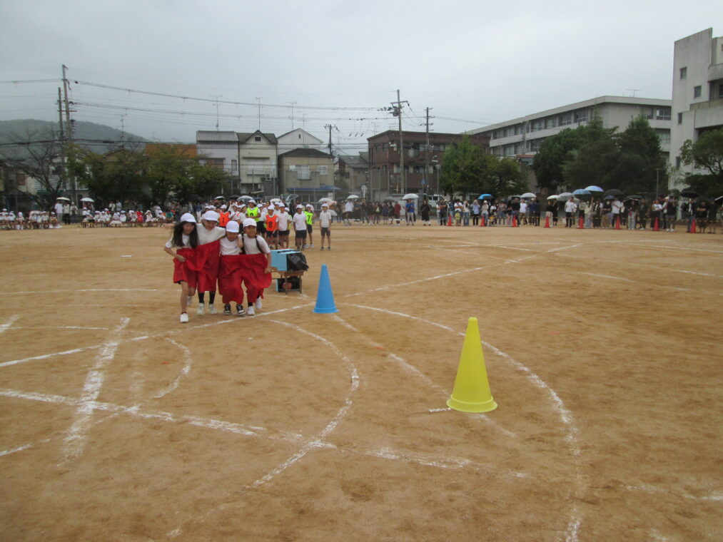 10月18日(土)に体育大会を開催しました。当日はたくさんの保護者や地域の方々にもお越しいただき、子どもたちのがんばりを見ていただきました。プログラムの途中で雨が降ってきたこともあり、どうなることかと少し心配にもなりましたが、なんとか最後までやり切ることができました。今年は1・3・5年生が徒競走、2・4・6年生が学年競技に挑戦しました!