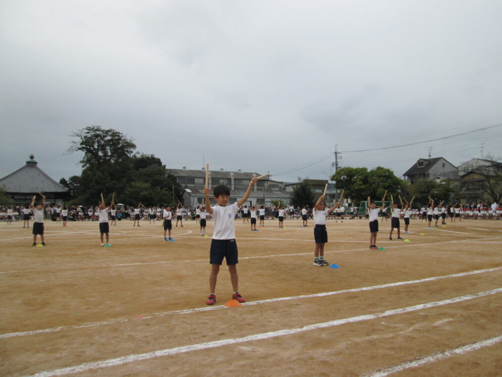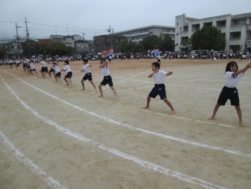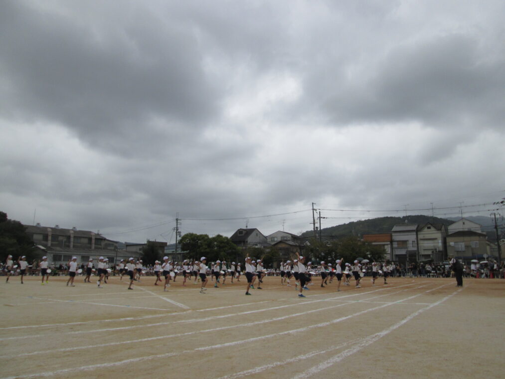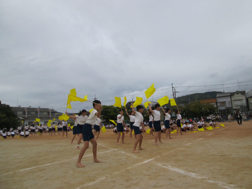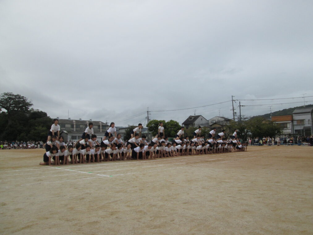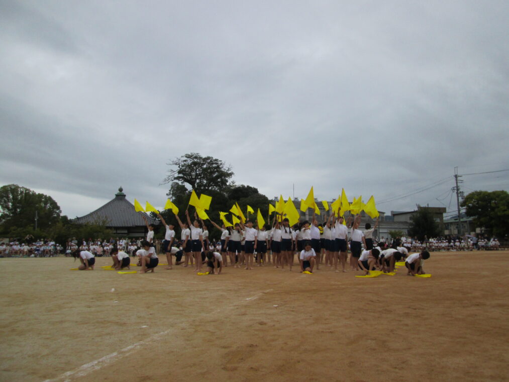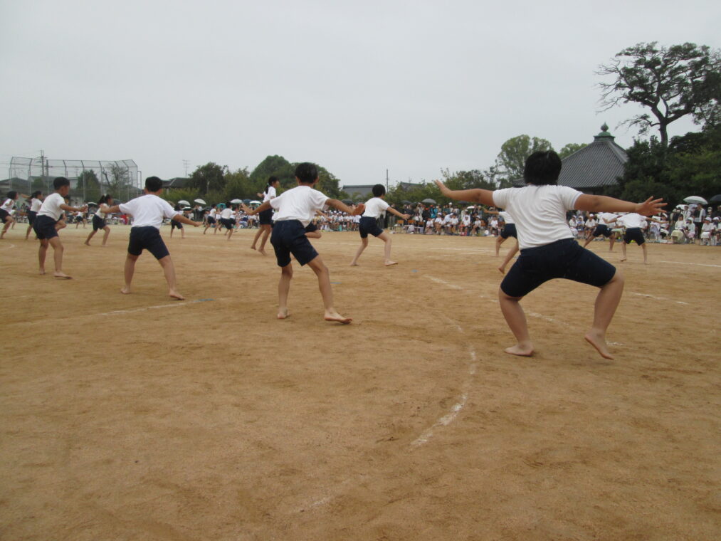 三小トピックス全力で走る徒競走や、迫力のある学年競技ももちろん大盛り上がりでしたが、体育大会の見どころというか、醍醐味のひとつはやはり学年全体で作り上げる集団演技ではないでしょうか?今年は、たいこに鳴子にフラッグ、組体操…各学年がそれぞれに趣向を凝らした演技を披露しました。雨が降っている中でも動じずに最後まで演技をやり切る姿や、学年で心をひとつにして動きをそろえる姿、どこをとってもカッコよかったです!どの学年も大変見応えがありました。