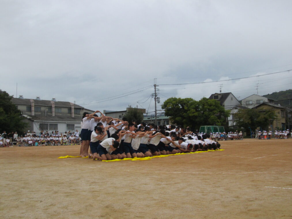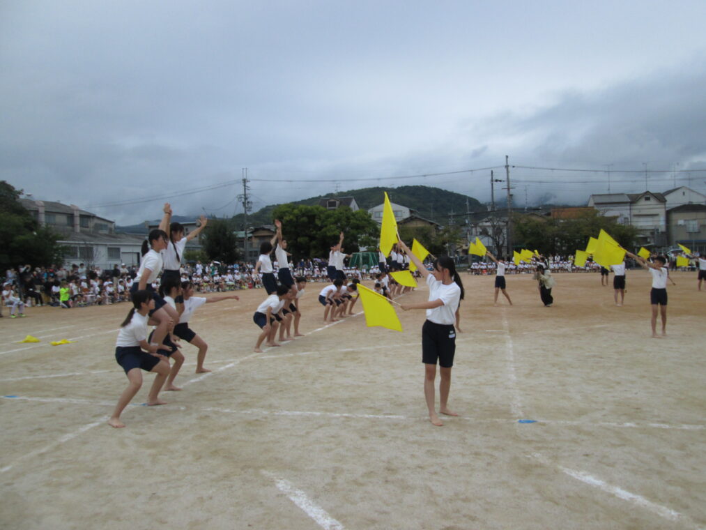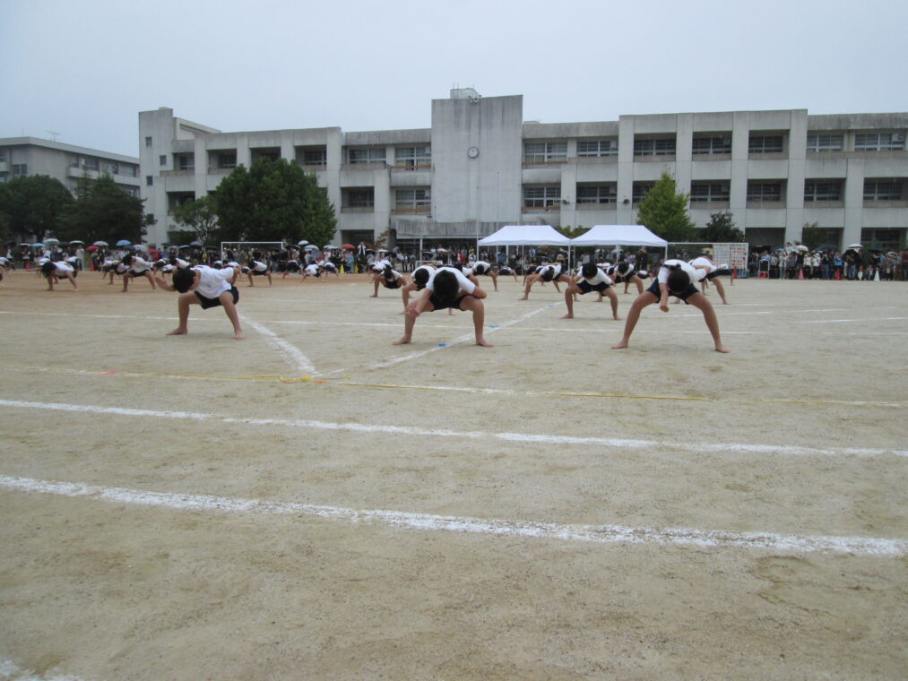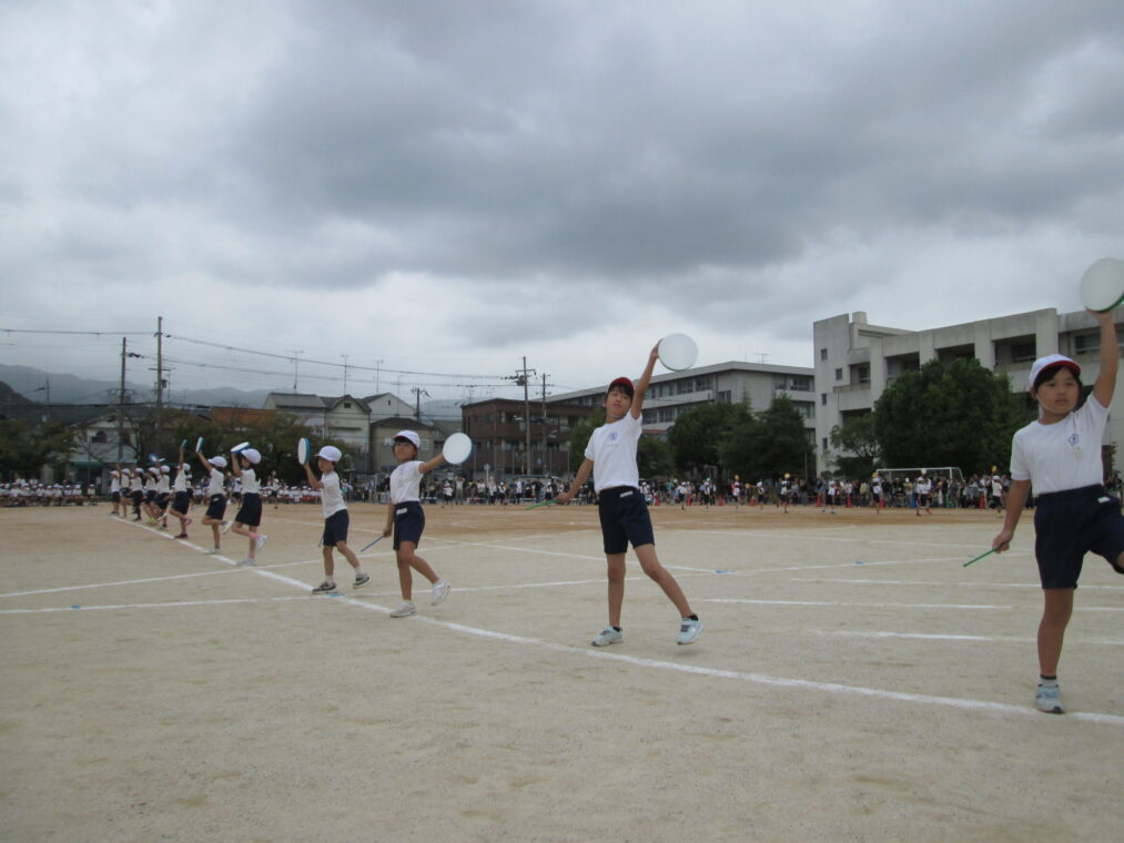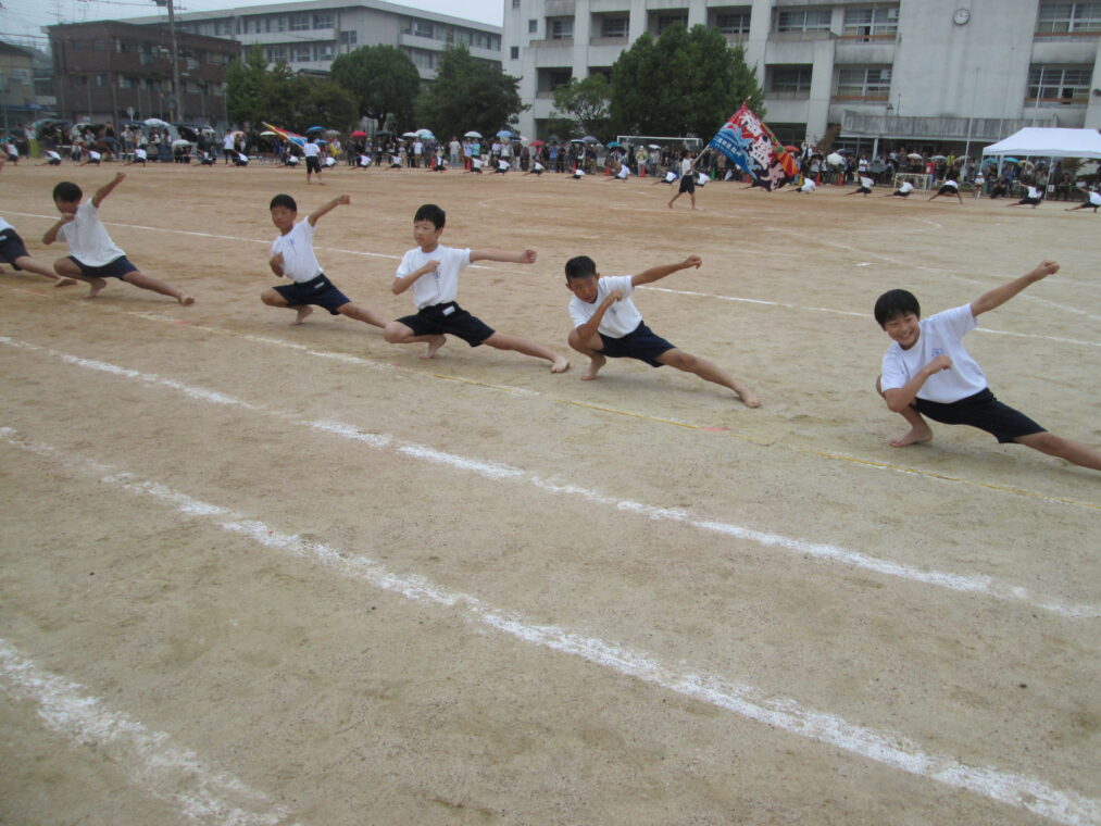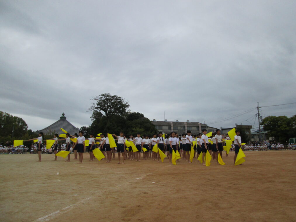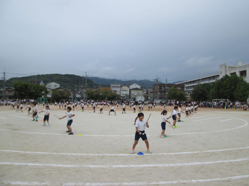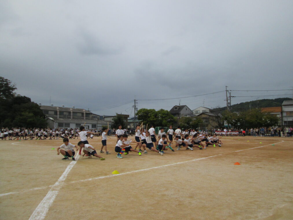 三小トピックス全力で走る徒競走や、迫力のある学年競技ももちろん大盛り上がりでしたが、体育大会の見どころというか、醍醐味のひとつはやはり学年全体で作り上げる集団演技ではないでしょうか?今年は、たいこに鳴子にフラッグ、組体操…各学年がそれぞれに趣向を凝らした演技を披露しました。雨が降っている中でも動じずに最後まで演技をやり切る姿や、学年で心をひとつにして動きをそろえる姿、どこをとってもカッコよかったです!どの学年も大変見応えがありました。
