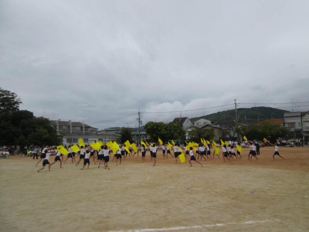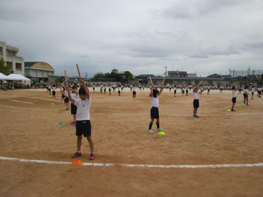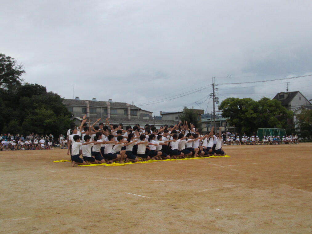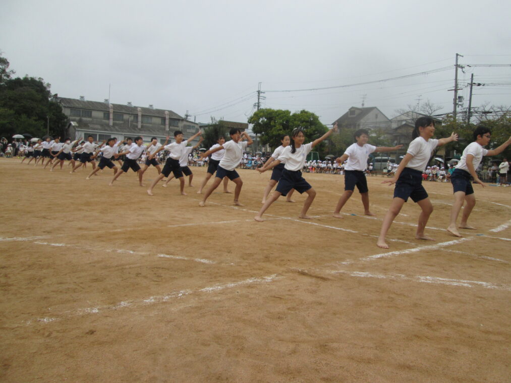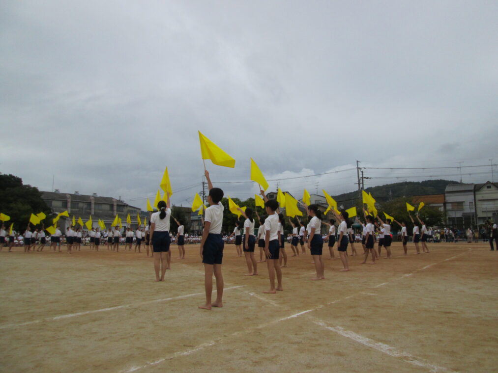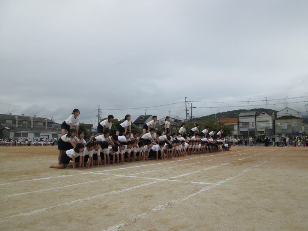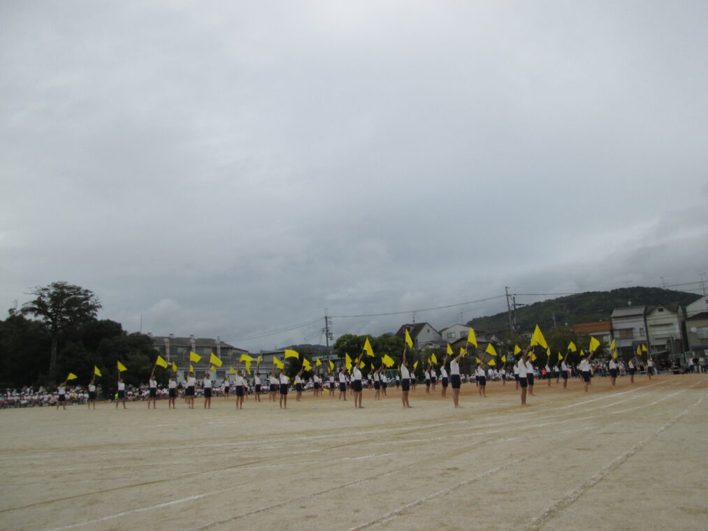 三小トピックス全力で走る徒競走や、迫力のある学年競技ももちろん大盛り上がりでしたが、体育大会の見どころというか、醍醐味のひとつはやはり学年全体で作り上げる集団演技ではないでしょうか?今年は、たいこに鳴子にフラッグ、組体操…各学年がそれぞれに趣向を凝らした演技を披露しました。雨が降っている中でも動じずに最後まで演技をやり切る姿や、学年で心をひとつにして動きをそろえる姿、どこをとってもカッコよかったです!どの学年も大変見応えがありました。