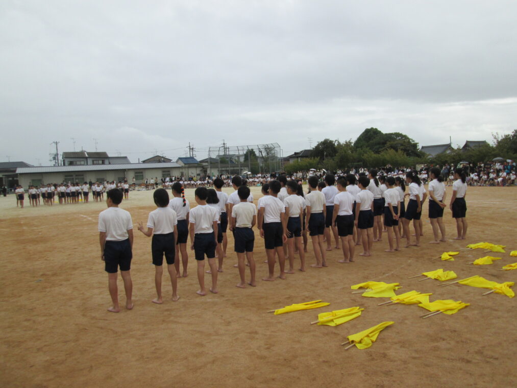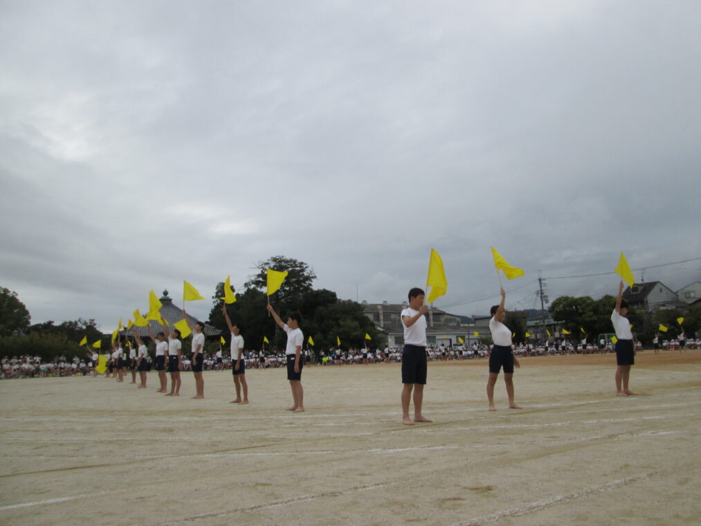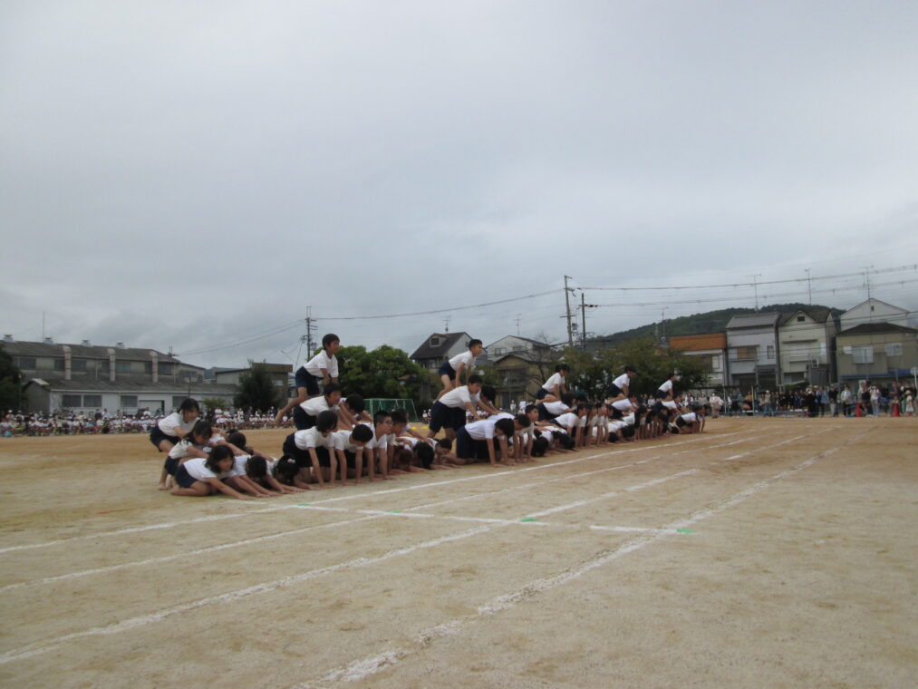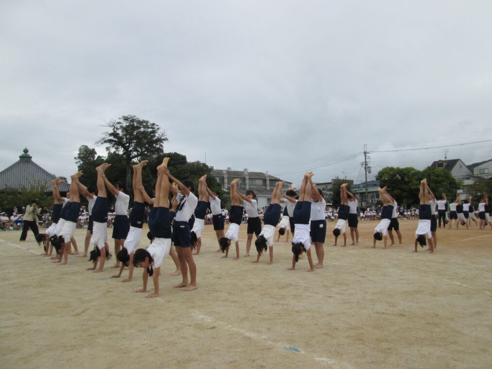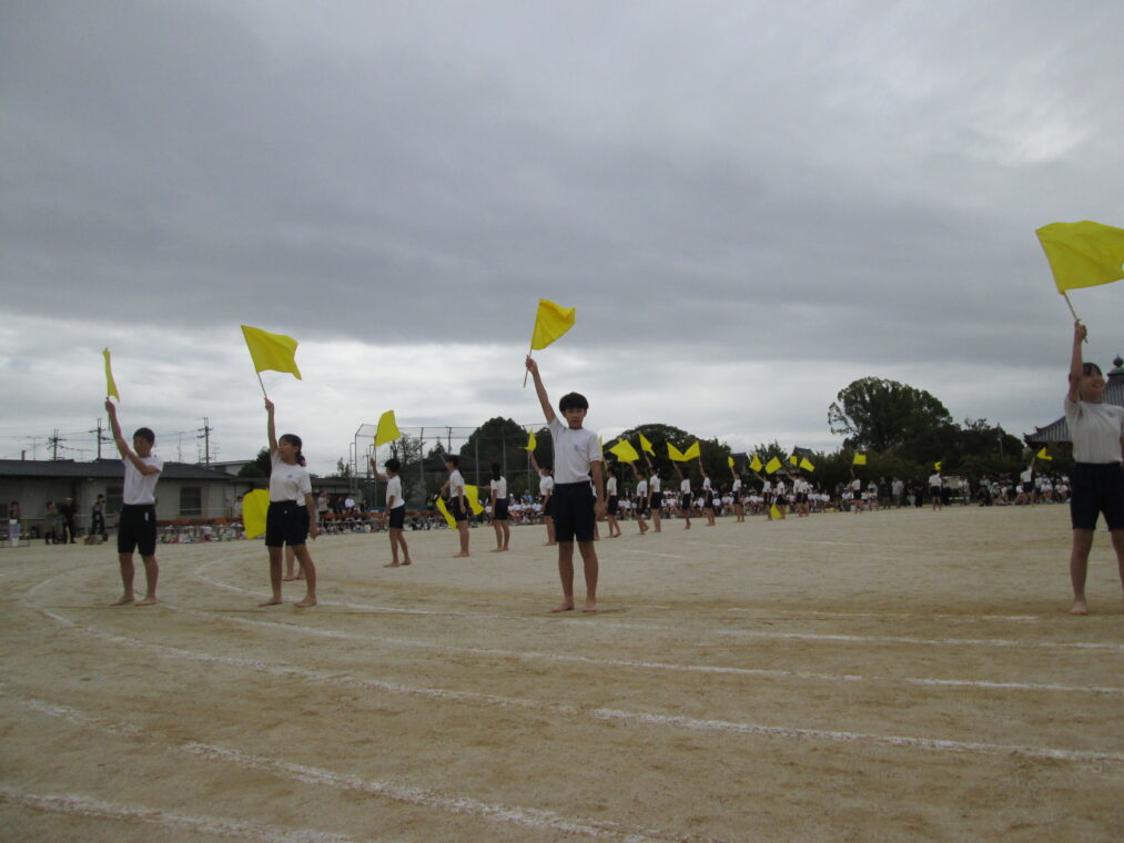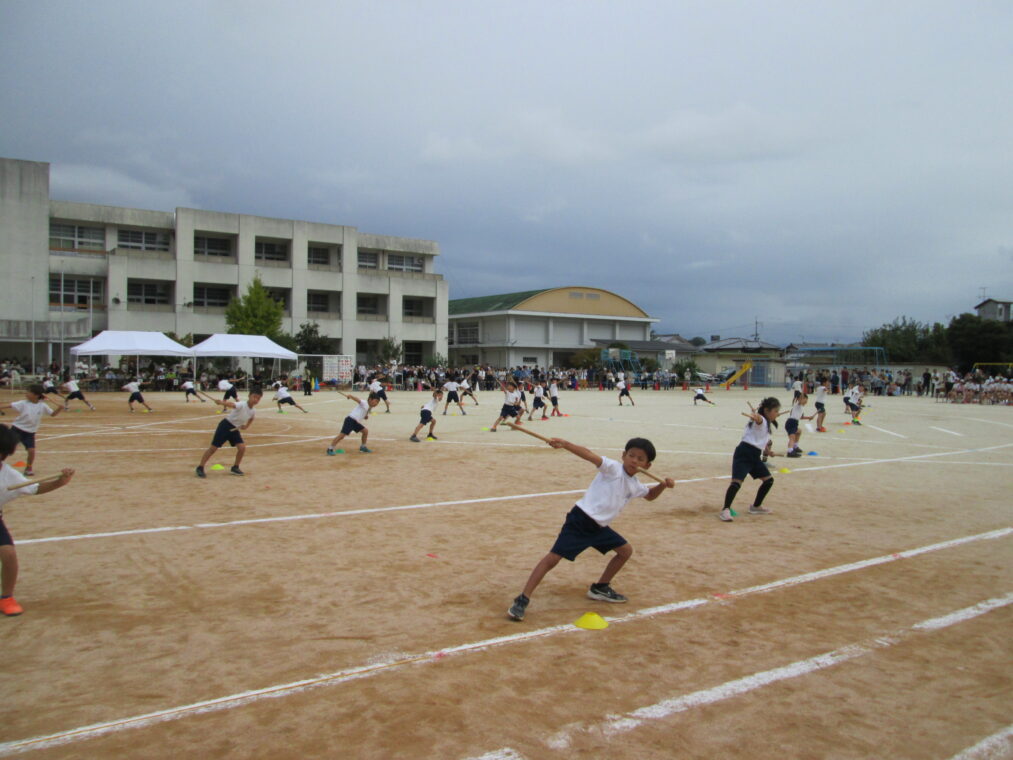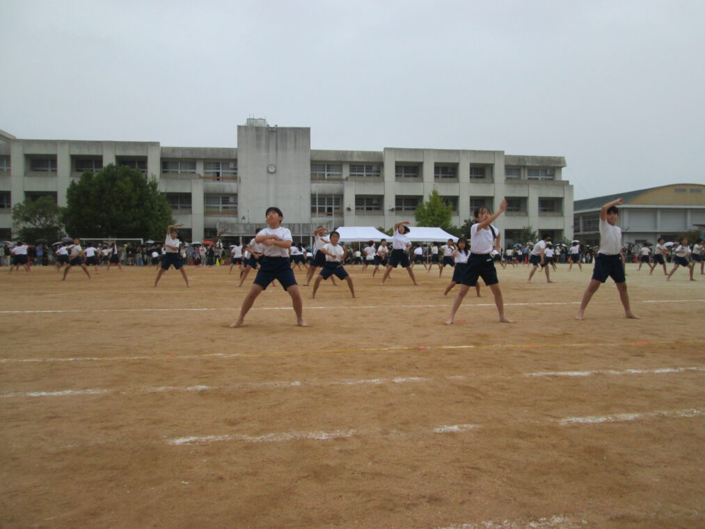 三小トピックス全力で走る徒競走や、迫力のある学年競技ももちろん大盛り上がりでしたが、体育大会の見どころというか、醍醐味のひとつはやはり学年全体で作り上げる集団演技ではないでしょうか?今年は、たいこに鳴子にフラッグ、組体操…各学年がそれぞれに趣向を凝らした演技を披露しました。雨が降っている中でも動じずに最後まで演技をやり切る姿や、学年で心をひとつにして動きをそろえる姿、どこをとってもカッコよかったです!どの学年も大変見応えがありました。