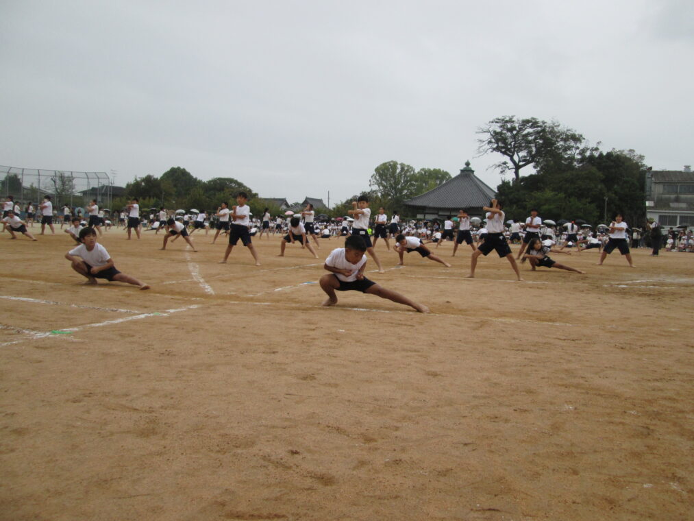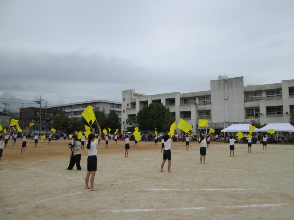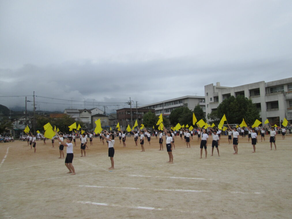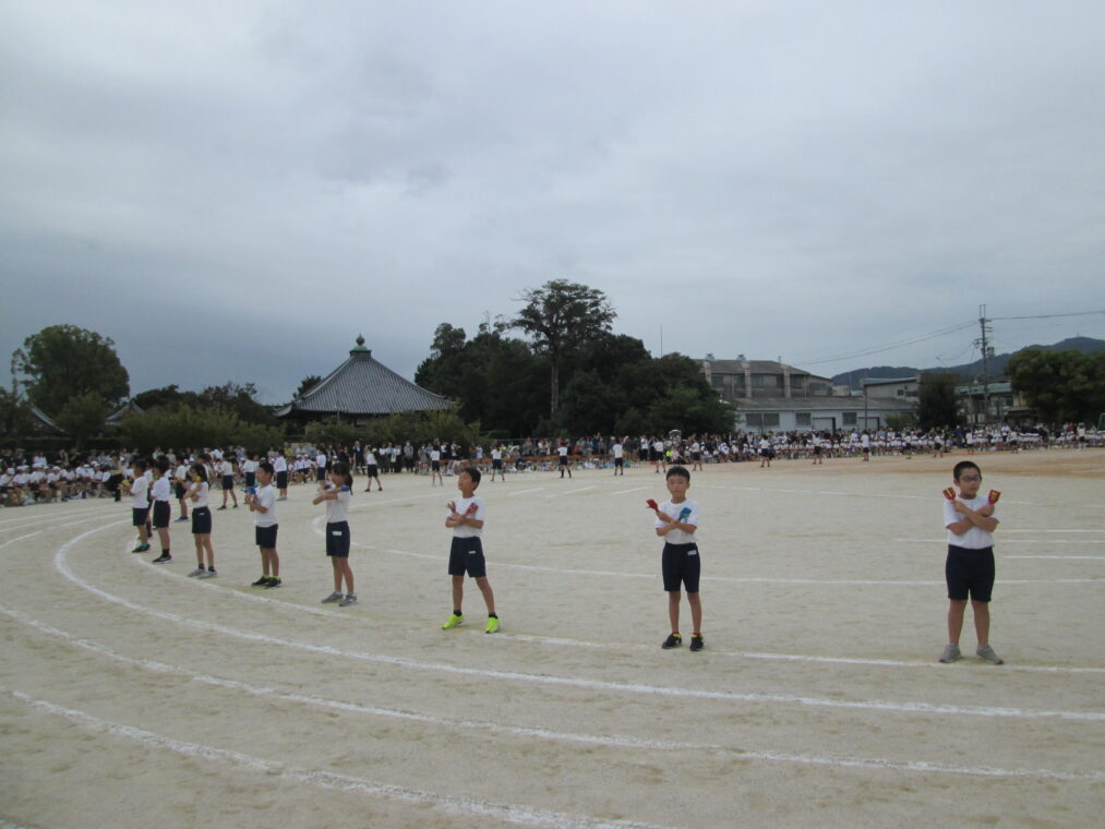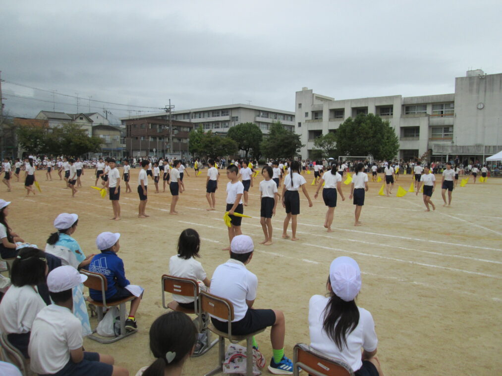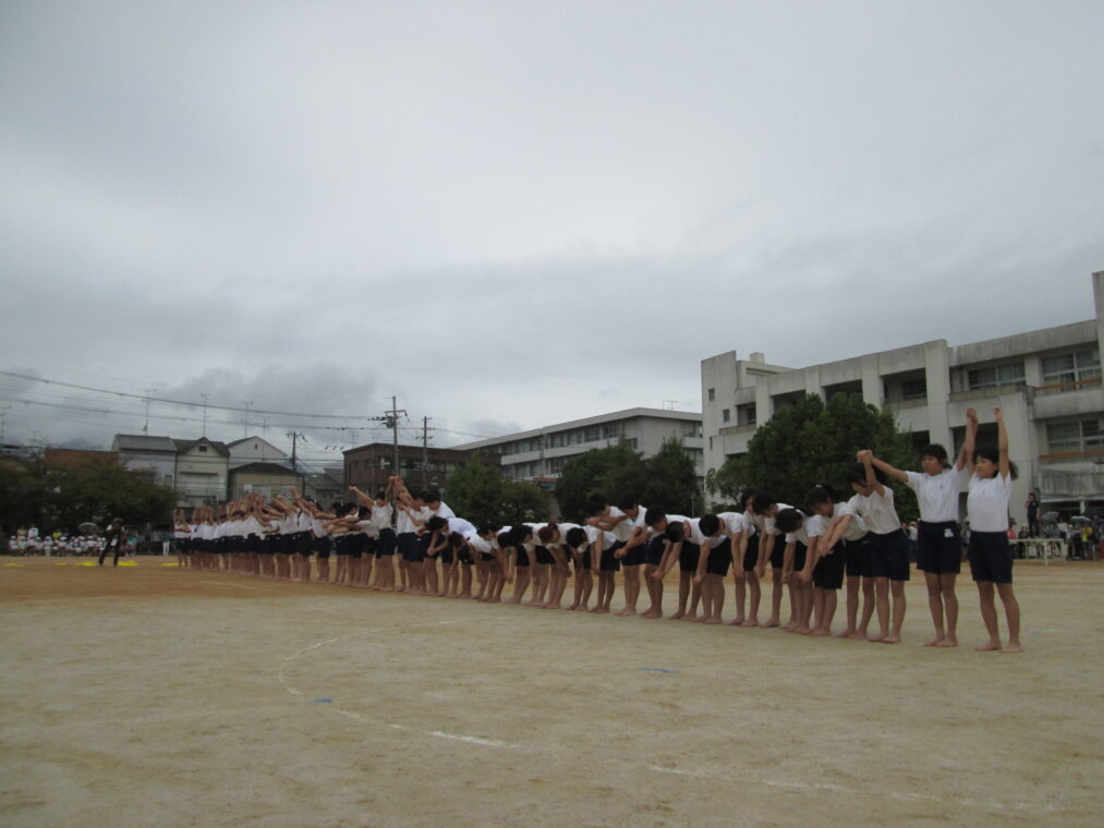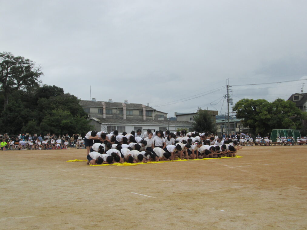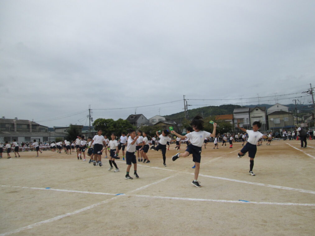 三小トピックス全力で走る徒競走や、迫力のある学年競技ももちろん大盛り上がりでしたが、体育大会の見どころというか、醍醐味のひとつはやはり学年全体で作り上げる集団演技ではないでしょうか?今年は、たいこに鳴子にフラッグ、組体操…各学年がそれぞれに趣向を凝らした演技を披露しました。雨が降っている中でも動じずに最後まで演技をやり切る姿や、学年で心をひとつにして動きをそろえる姿、どこをとってもカッコよかったです!どの学年も大変見応えがありました。