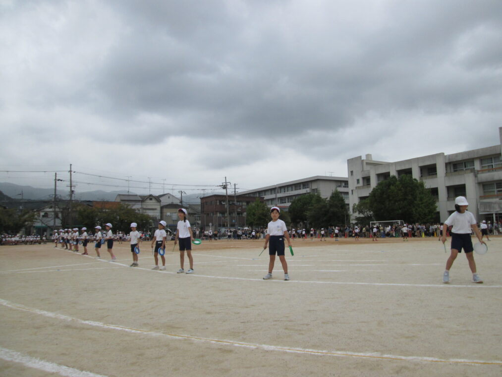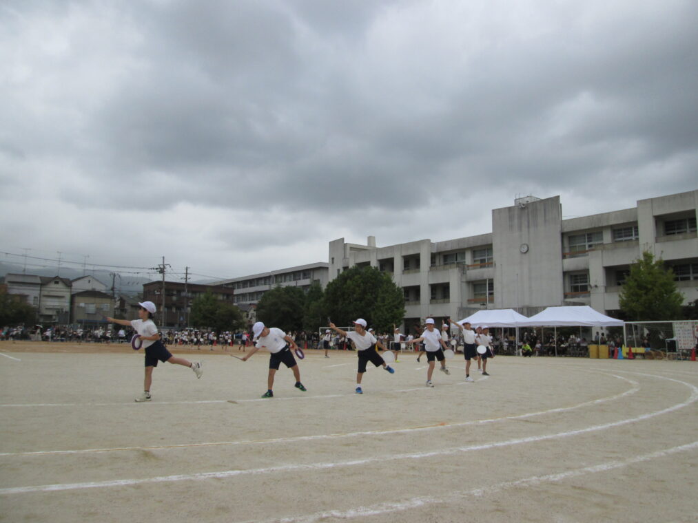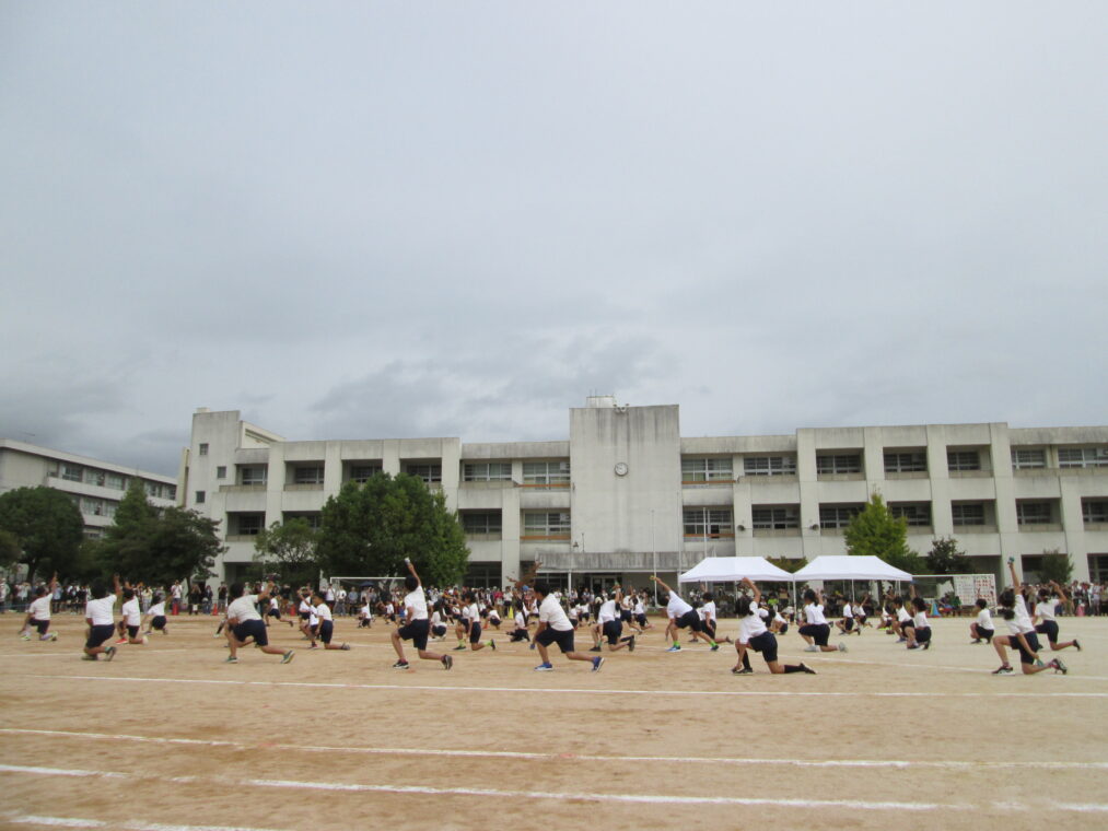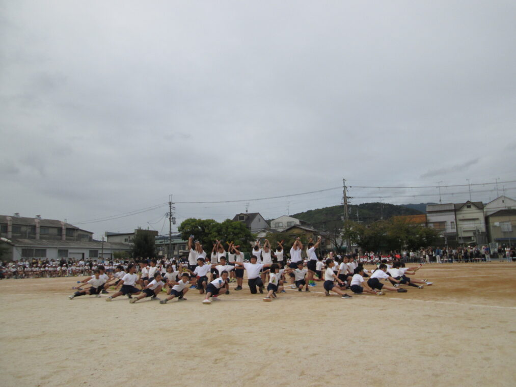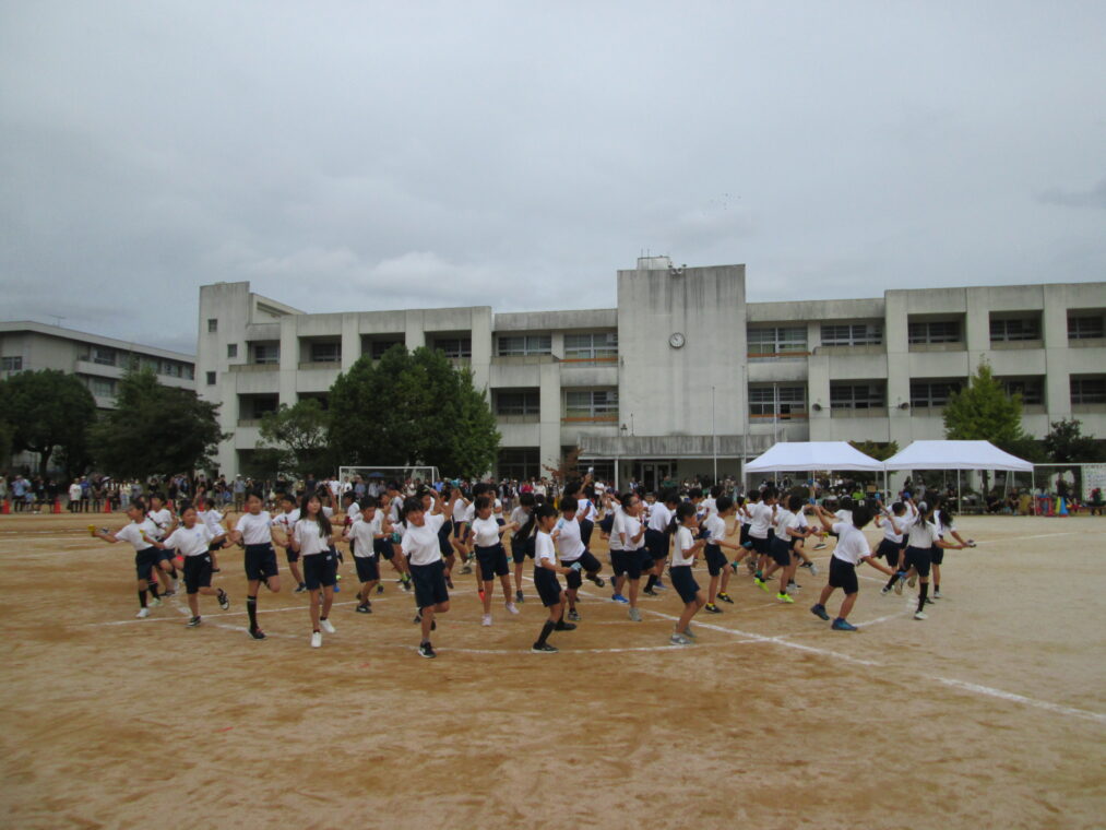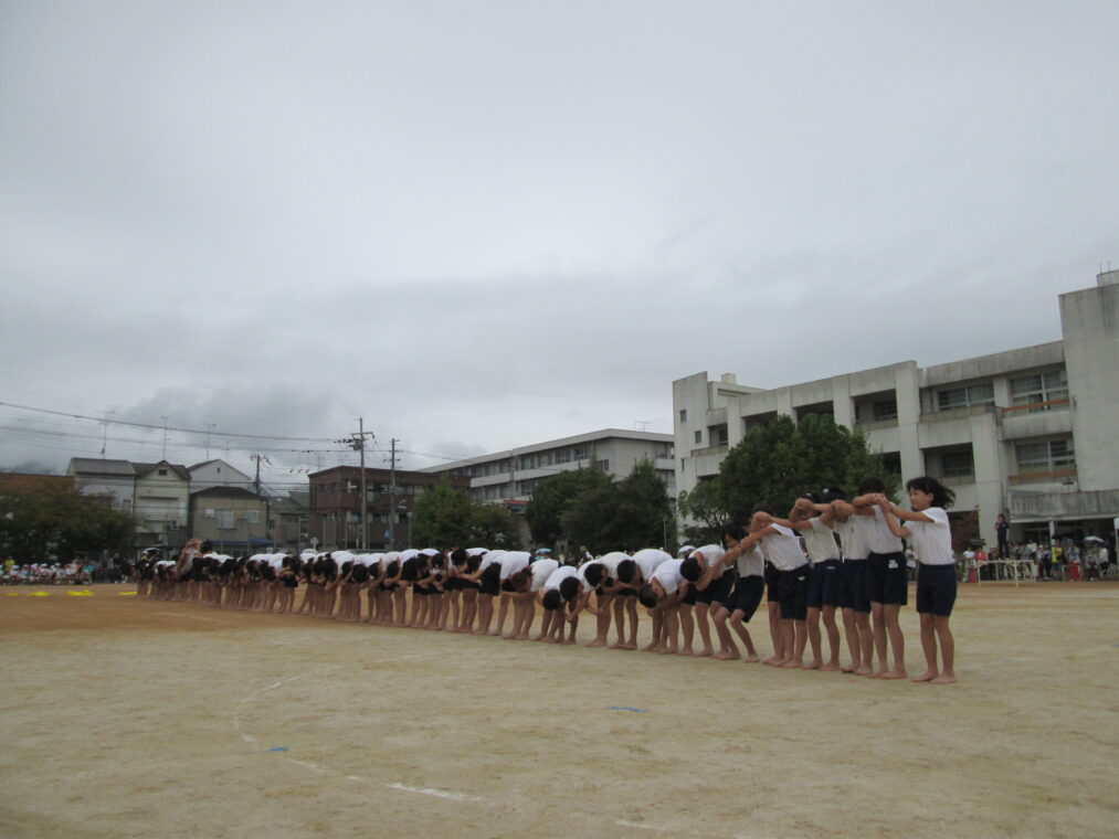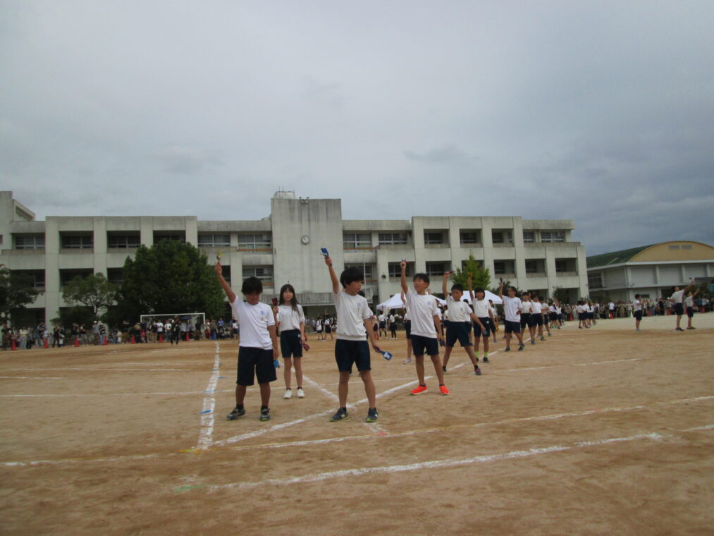 三小トピックス全力で走る徒競走や、迫力のある学年競技ももちろん大盛り上がりでしたが、体育大会の見どころというか、醍醐味のひとつはやはり学年全体で作り上げる集団演技ではないでしょうか?今年は、たいこに鳴子にフラッグ、組体操…各学年がそれぞれに趣向を凝らした演技を披露しました。雨が降っている中でも動じずに最後まで演技をやり切る姿や、学年で心をひとつにして動きをそろえる姿、どこをとってもカッコよかったです!どの学年も大変見応えがありました。