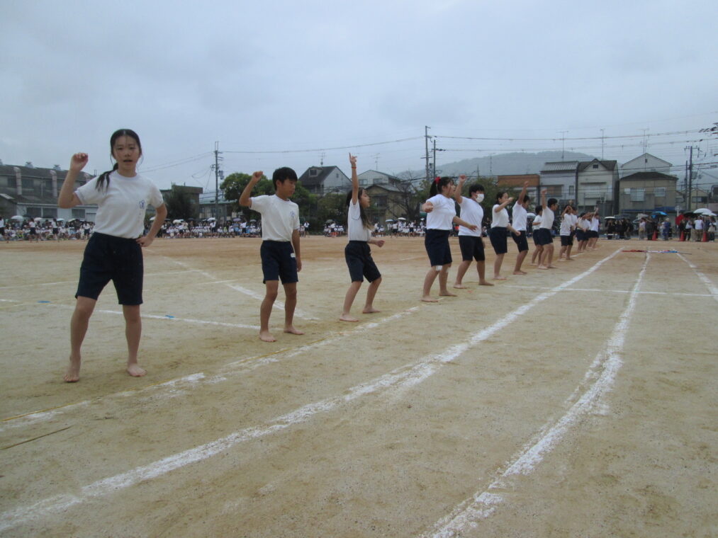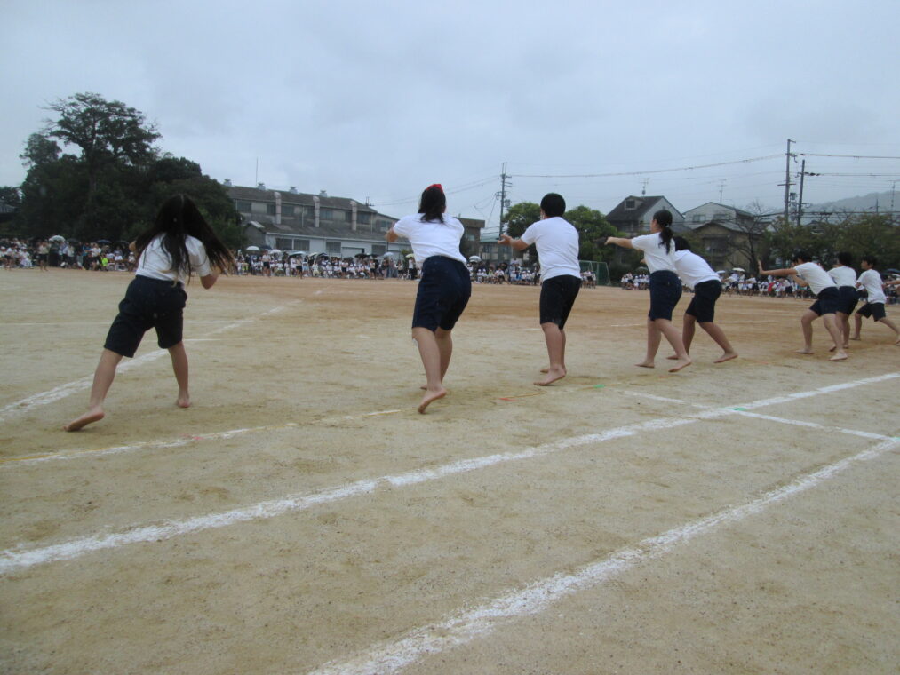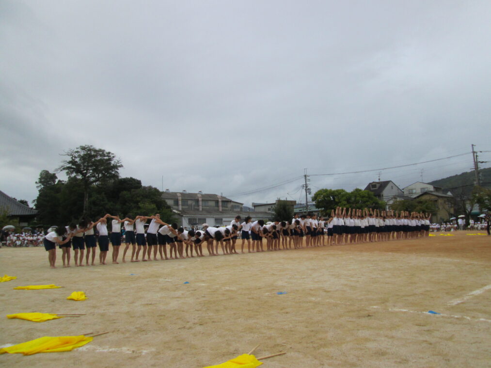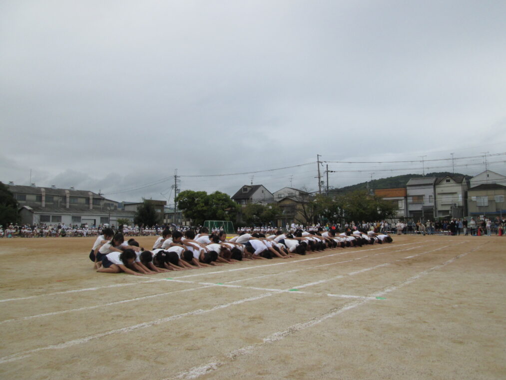 全力で走る徒競走や、迫力のある学年競技ももちろん大盛り上がりでしたが、体育大会の見どころというか、醍醐味のひとつはやはり学年全体で作り上げる集団演技ではないでしょうか?今年は、たいこに鳴子にフラッグ、組体操…各学年がそれぞれに趣向を凝らした演技を披露しました。雨が降っている中でも動じずに最後まで演技をやり切る姿や、学年で心をひとつにして動きをそろえる姿、どこをとってもカッコよかったです!どの学年も大変見応えがありました。