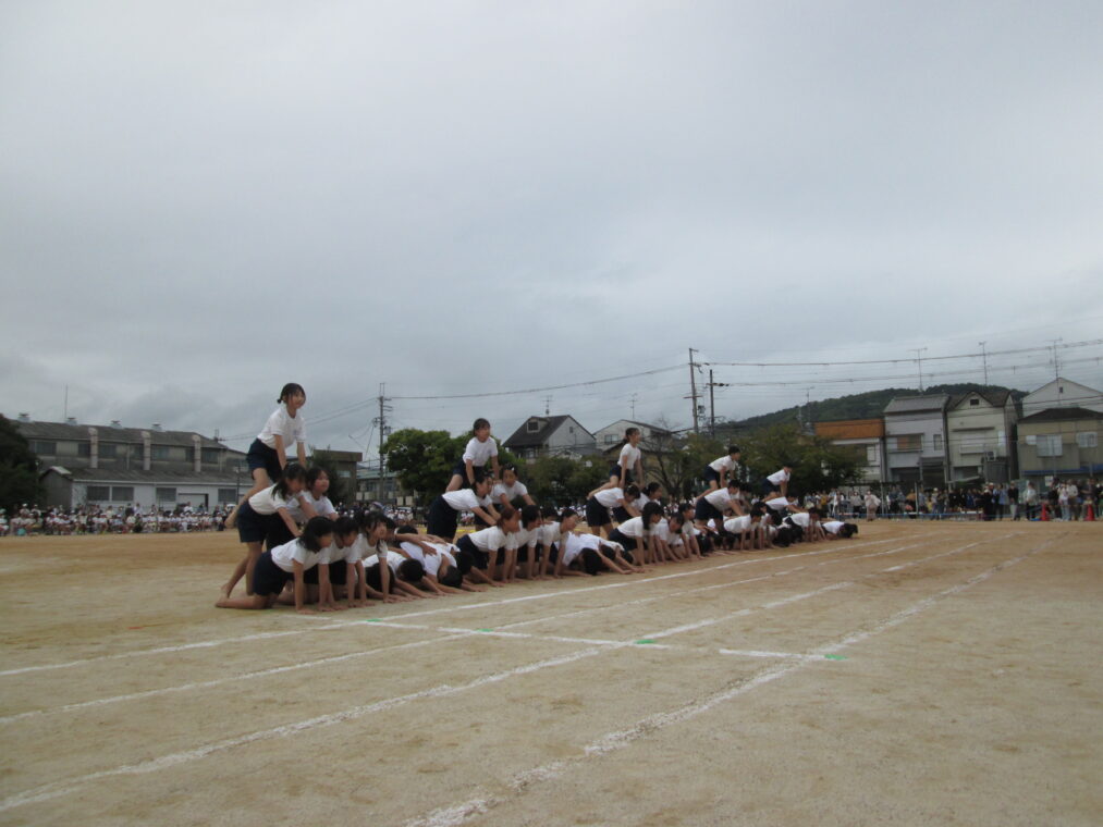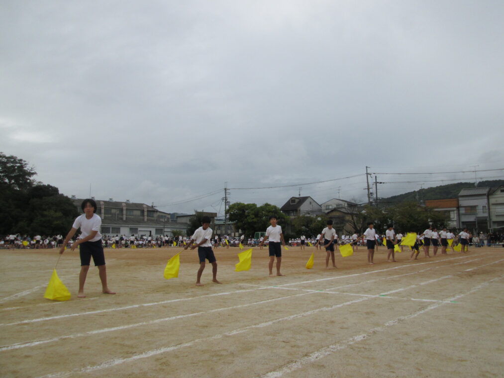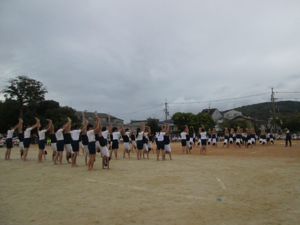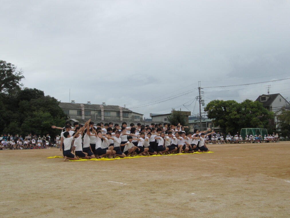 全力で走る徒競走や、迫力のある学年競技ももちろん大盛り上がりでしたが、体育大会の見どころというか、醍醐味のひとつはやはり学年全体で作り上げる集団演技ではないでしょうか?今年は、たいこに鳴子にフラッグ、組体操…各学年がそれぞれに趣向を凝らした演技を披露しました。雨が降っている中でも動じずに最後まで演技をやり切る姿や、学年で心をひとつにして動きをそろえる姿、どこをとってもカッコよかったです!どの学年も大変見応えがありました。