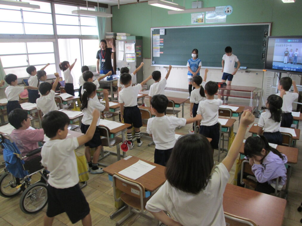 今年も大成功に終わった体育大会ですが、何も当日だけがんばったわけではありません。応援団や応援席担当の6年生はずいぶん前から応援を考え、各教室に教えに行っていましたし、プログラム担当は見えないところでコツコツと制作を進めていました。道具の準備係は当日の種目の合い間にテキパキと活動する姿が印象的でした。他にも児童会本部のあいさつや放送担当の実況中継…いろいろな人のがんばりがひとつになって、体育大会本番がうまくいったのだと思います。6年生をはじめ、全校のみなさん、本当におつかれさまでした!みんな、よくがんばったね!