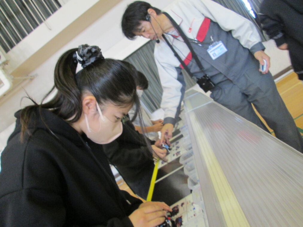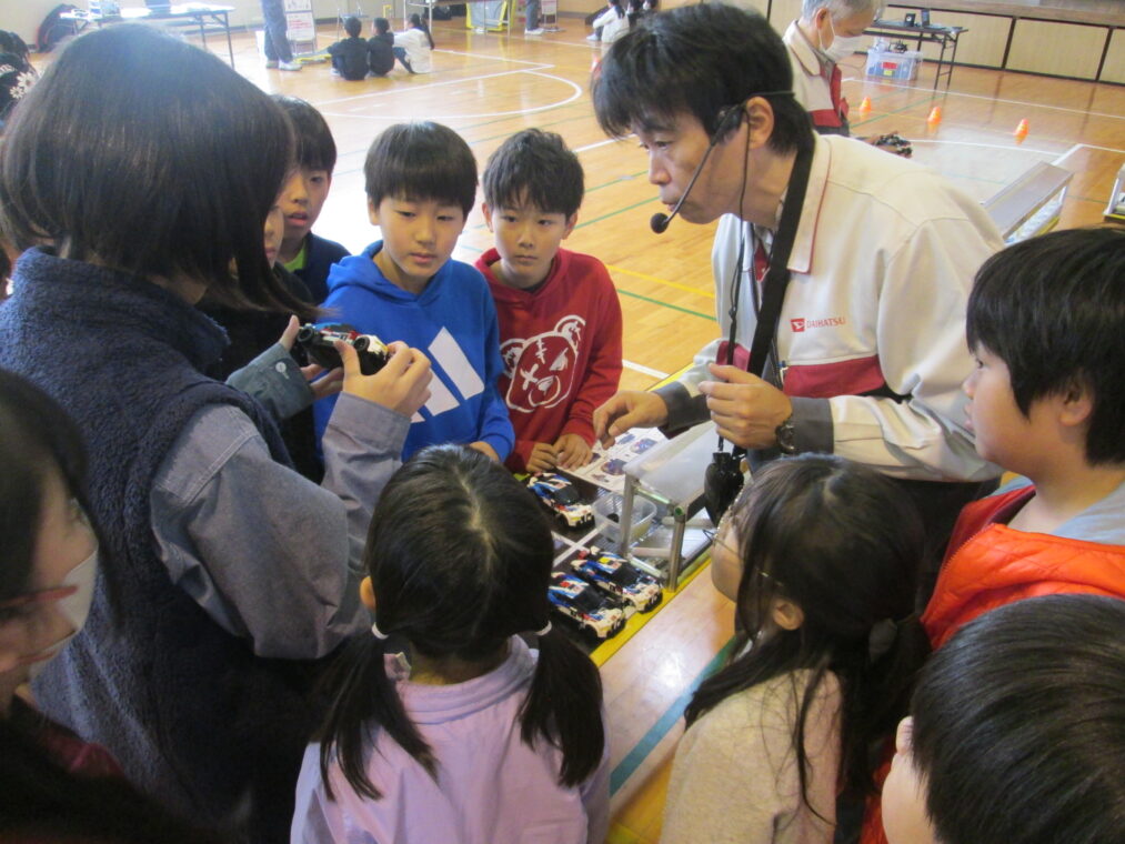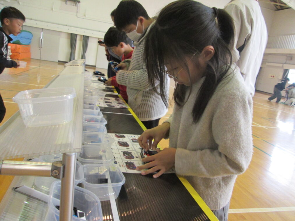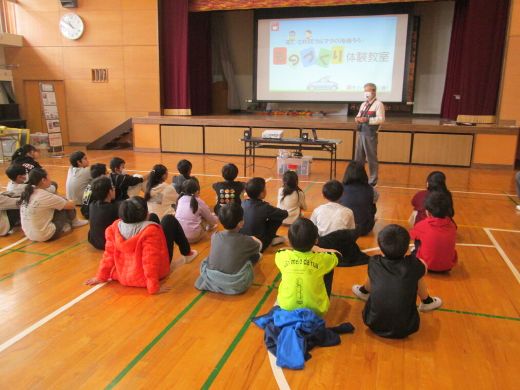 12月2日(火)にDAIHATSUのみなさんに来ていただき、「ダイハツものづくり体験教室」を実施していただきました。自動車づくりの主な工程である「プレス」「溶接」「塗装」「組み立て」の作業を、分かりやすく説明していただき、実際に体験しながら学ぶことができました。また、組み立てラインの流れ作業を、ブロックで体験するコーナーでは、それぞれに仕事を分担しながら効率よく自動車をつくっていく過程を身をもって知ることができました。5年生は2学期に入り、村田製作所や大阪ガスの出前授業などがありました。日本の企業のみなさんが培ってこられた技術には、世界に誇れるものがたくさんあります。こうやって「本物に触れる」というのは、大変貴重な体験です。ぜひ、子どもたちには、より学びを深めたいい思い出としてほしいです。