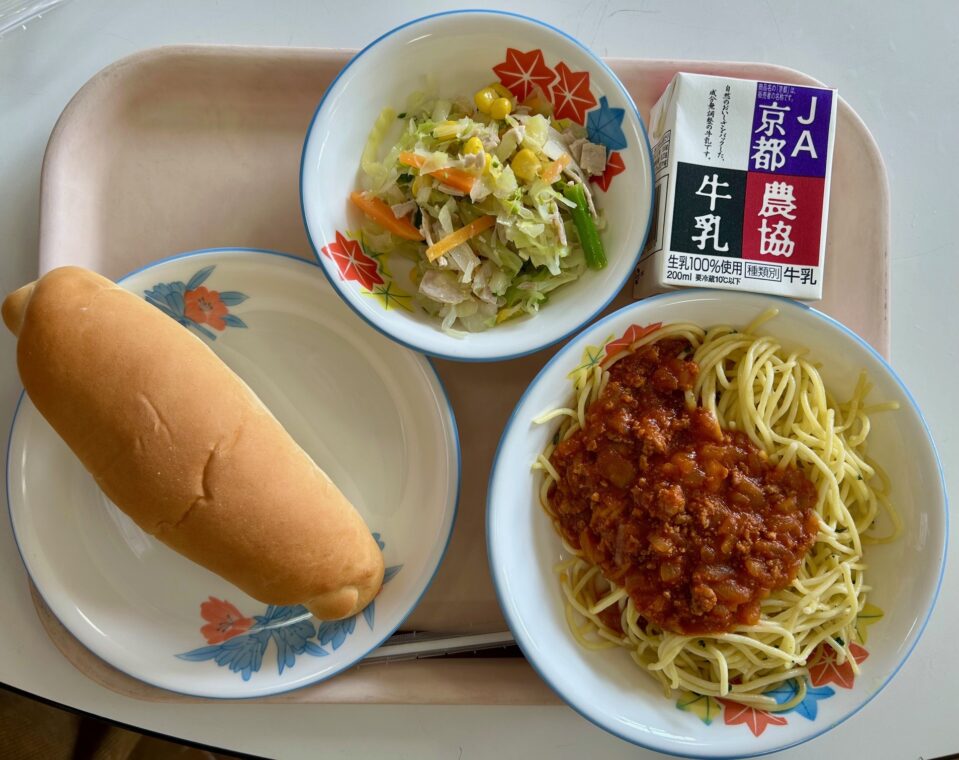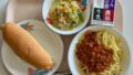 3学期2回目の給食は、万博献立「イタリア」で小型パン、牛乳、ボロネーゼ、イタリアンサラダでした。ボロネーゼは、ひき肉を使ったソースのことで、いつも食べているスパゲティミートソースをイタリア風に呼んでみました。