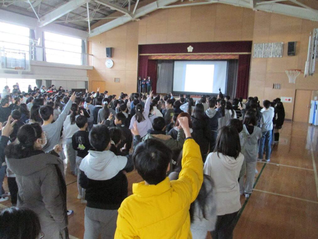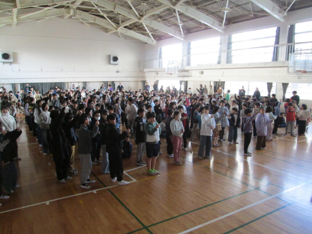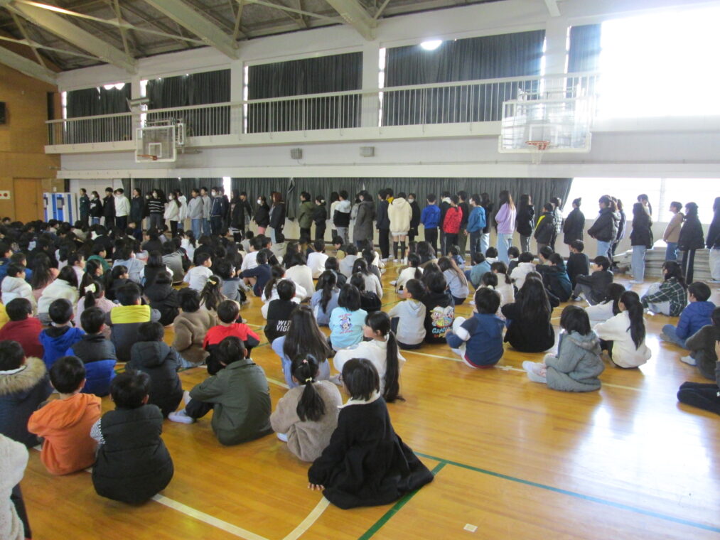1月28日(水)に児童集会を行いました。メインの内容は、交流あそびの提案と全校じゃんけん大会でした。今回の交流あそびは、低学年が考えたあそびを高学年と一緒にすることになります。どんなあそびを考えてくれるのか、今から楽しみにしています♪さて、じゃんけん大会も盛り上がり、今回の児童集会はこれで終わり、と思いきや…?なんと、全校に向けてのサプライズで、6年生の合唱が披露されました。これまでの4か月間、音楽の授業でずっと練習してきた歌をみんなに聞いてもらおうと考えていたようです。高学年ならではの美しい歌声のハーモニーに、全校のみんなも思わず聞き入ってしまいました。6年生のみなさん、ありがとうございました♪