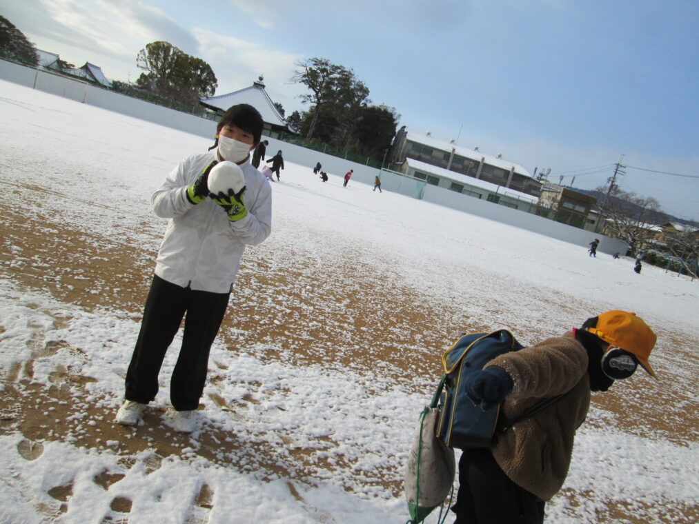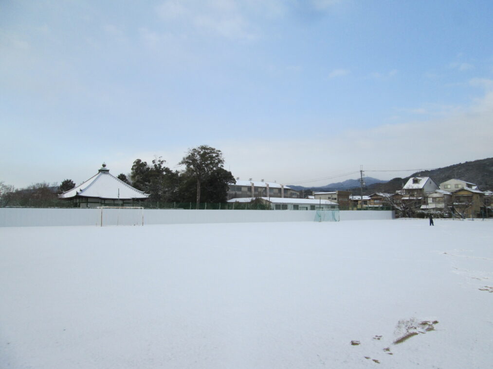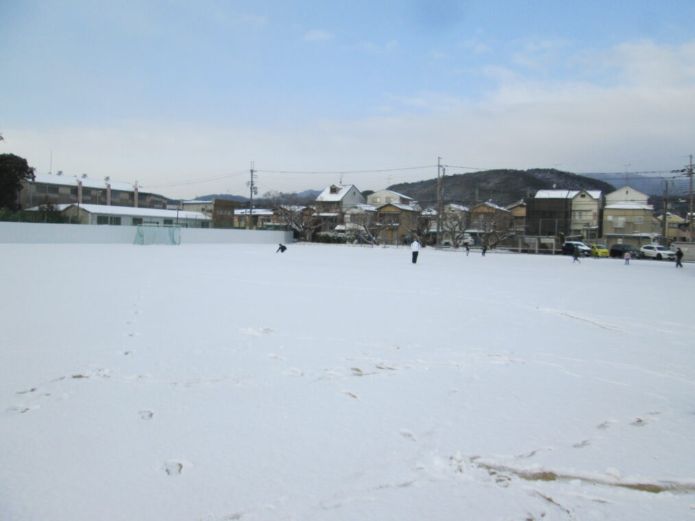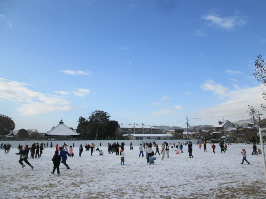 先週の月曜日は全国的に寒波が押し寄せ、近畿地方でも広い地域で積雪が見られました。長岡京市でも朝から雪が積もり、驚かれた人も多かったのではないでしょうか。朝、学校に登校してきた子どもたちは真っ白になった校庭を見て大はしゃぎ!朝休みから雪合戦をしたり、雪だるまを作ったりと、普段はできない雪あそびに夢中になっていました。「冬来たりなば春遠からじ」と言いますが、寒い冬が来たということは、春はもうすぐそこです。子どもたちが学校に登校する日は、全学年ともあと30日を切りました。あたたかい春を待ちわびながら、一日一日を大切に過ごしてほしいと思います。