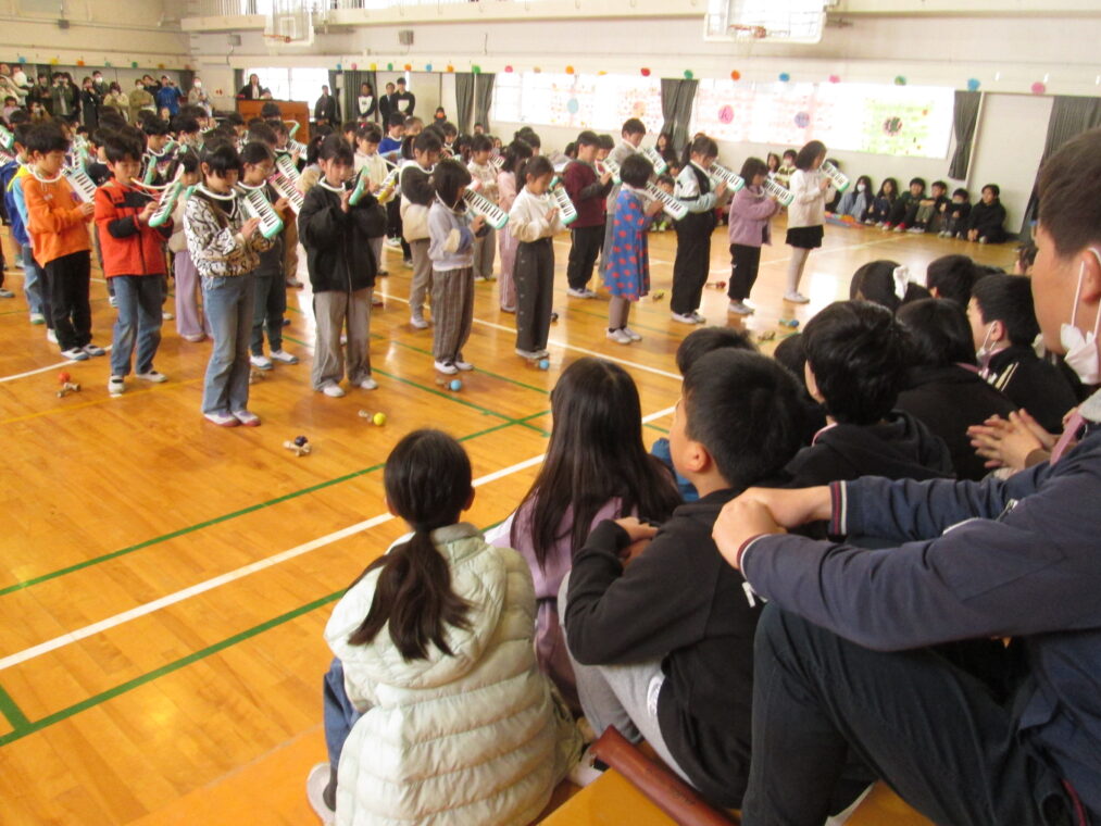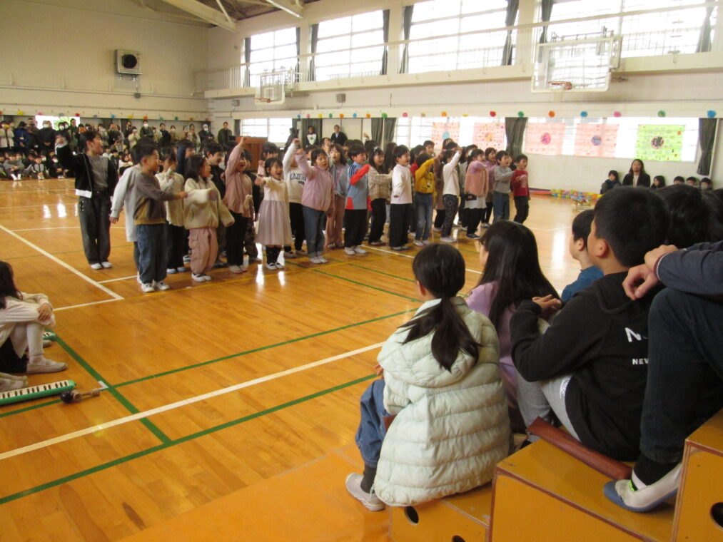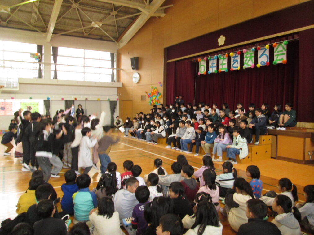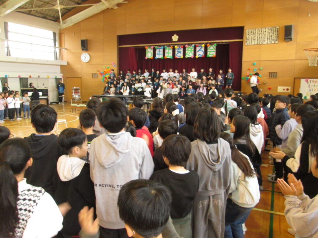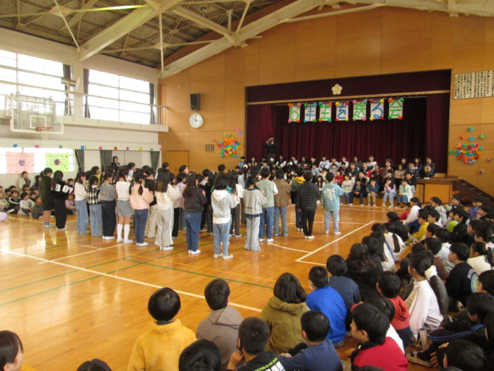 2月25日(水)に「6年生を送る会」を行いました。この取組はこれまでお世話になった6年生に向けて、全校のみんなでお祝いやお礼の気持ちを伝えようというものです。各学年からの出し物を見ていると、気持ちのこもったメッセージだけでなく、合唱・合奏・替え歌・手話・けん玉・手作りのプレゼント…と、どの学年も工夫を凝らした発表で、6年生に向けて「ありがとう」のあたたかい気持ちを伝えました。最後は全校みんなで「また会える日まで」の合唱をして、大盛り上がりで会を終えました。6年生は卒業まであと少しになりました、最後まで長三小での楽しい思い出を作ってほしいと思います。当日の司会進行はもちろん、準備や片づけ、花のアーチ持ち、寄せ書きの掲示など、今回の送る会は5年生が中心となって進めてくれました。もうすぐ6年生になるための心がまえが感じられ、本当にステキな会となりました。5年生のみなさん、ありがとうございました♪