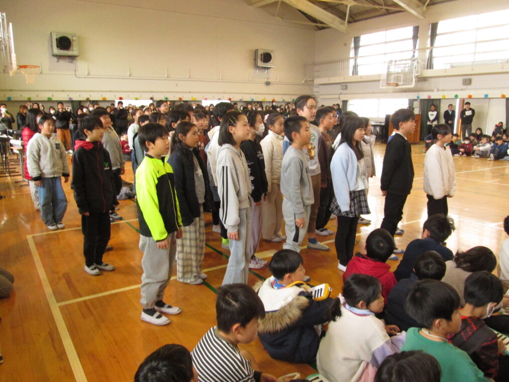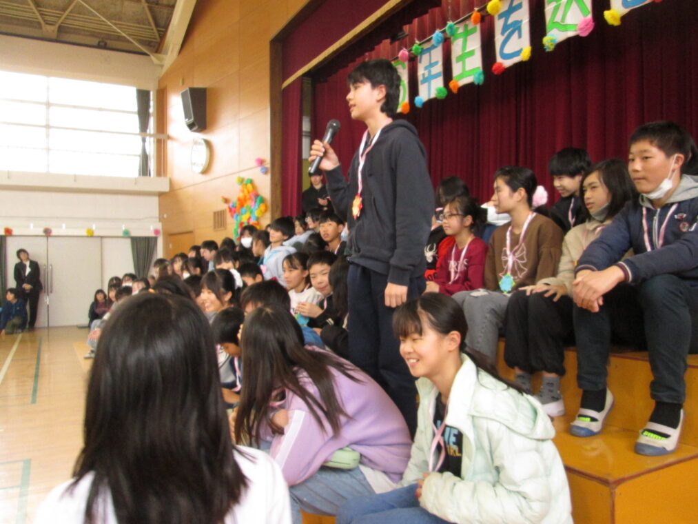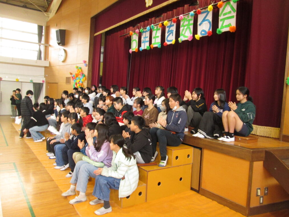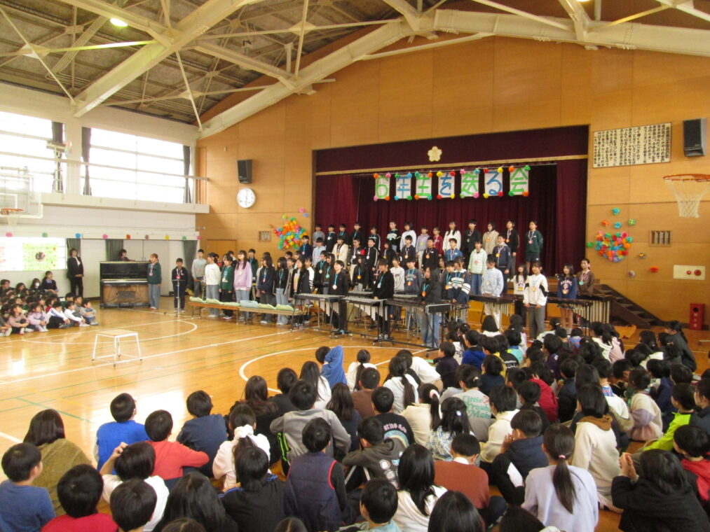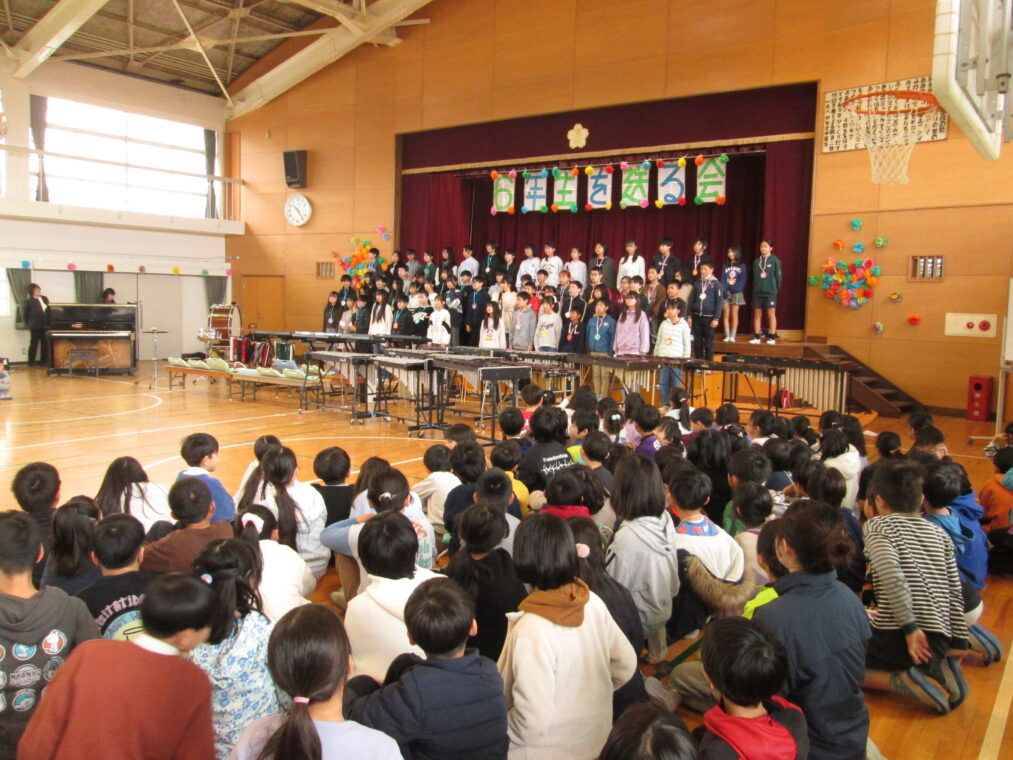2月25日(水)に「6年生を送る会」を行いました。この取組はこれまでお世話になった6年生に向けて、全校のみんなでお祝いやお礼の気持ちを伝えようというものです。各学年からの出し物を見ていると、気持ちのこもったメッセージだけでなく、合唱・合奏・替え歌・手話・けん玉・手作りのプレゼント…と、どの学年も工夫を凝らした発表で、6年生に向けて「ありがとう」のあたたかい気持ちを伝えました。最後は全校みんなで「また会える日まで」の合唱をして、大盛り上がりで会を終えました。6年生は卒業まであと少しになりました、最後まで長三小での楽しい思い出を作ってほしいと思います。当日の司会進行はもちろん、準備や片づけ、花のアーチ持ち、寄せ書きの掲示など、今回の送る会は5年生が中心となって進めてくれました。もうすぐ6年生になるための心がまえが感じられ、本当にステキな会となりました。5年生のみなさん、ありがとうございました♪