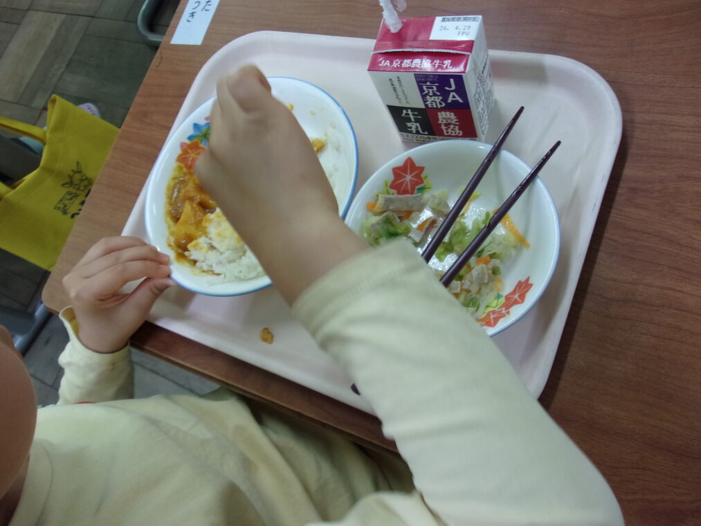 三小トピックス1年生が、入学して初めての給食をいただきました。