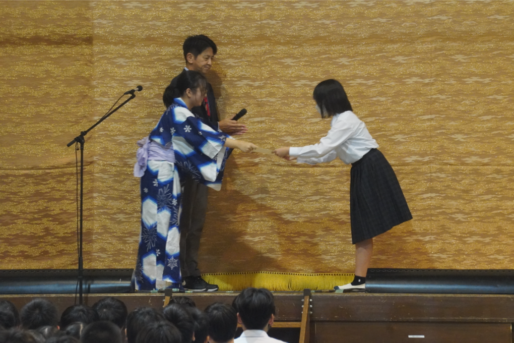 10月9日(木)、三中祭の初日として3年生による演劇発表が行われました。「どの学級も本日が最高の出来栄えだった」との評価通り、キャストは役を見事に演じきり、裏方を含めた全員の力が結集された素晴らしい舞台となりました。まさに3年生にふさわしい「ラストステージ」となりました。