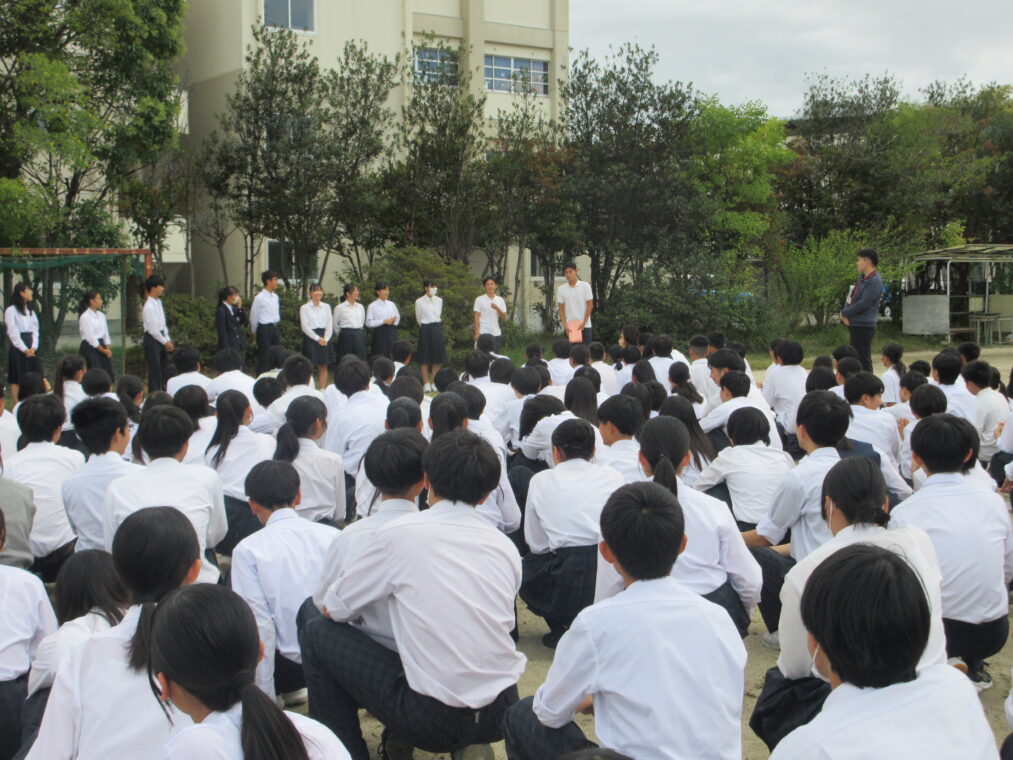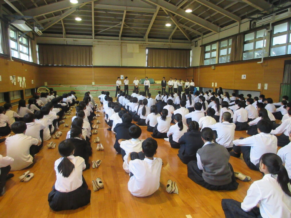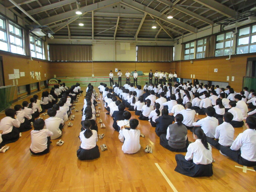 結団式では、3年生のリーダーを中心に、生徒たちが主体的に式を運営しました。各団の雰囲気づくりや団結を高める工夫が随所に見られ、体育祭に向けた熱意が感じられる時間となりました。