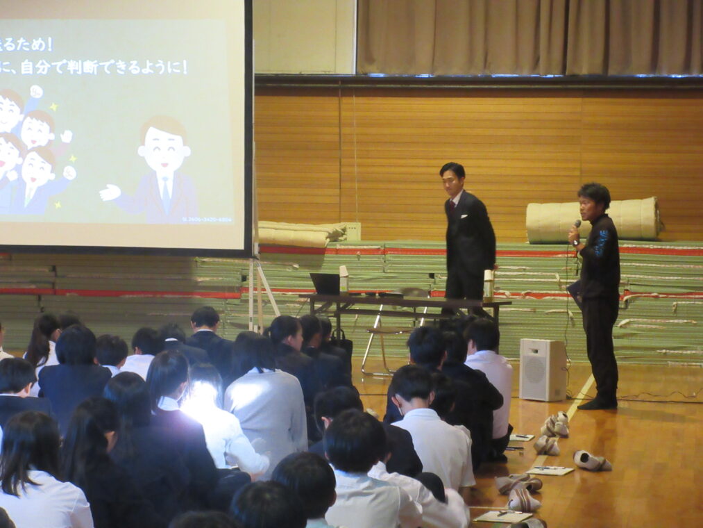 講演では、普段の授業では触れることの少ない内容も多く、生徒たちは興味深く耳を傾けていました。今回の学びを、今後の生活や進路選択に活かしてほしいと願っています。