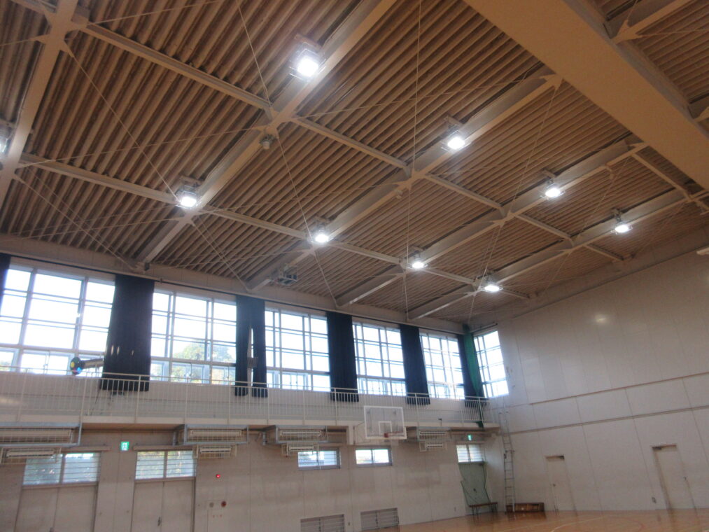 学校の様子 10月20日から始まった体育館のLED照明工事が無事終了し、本日より体育館の利用が再開されました。放課後の部活動では、バドミントン部と男子バスケットボール部が久しぶりに体育館での活動を行いました。